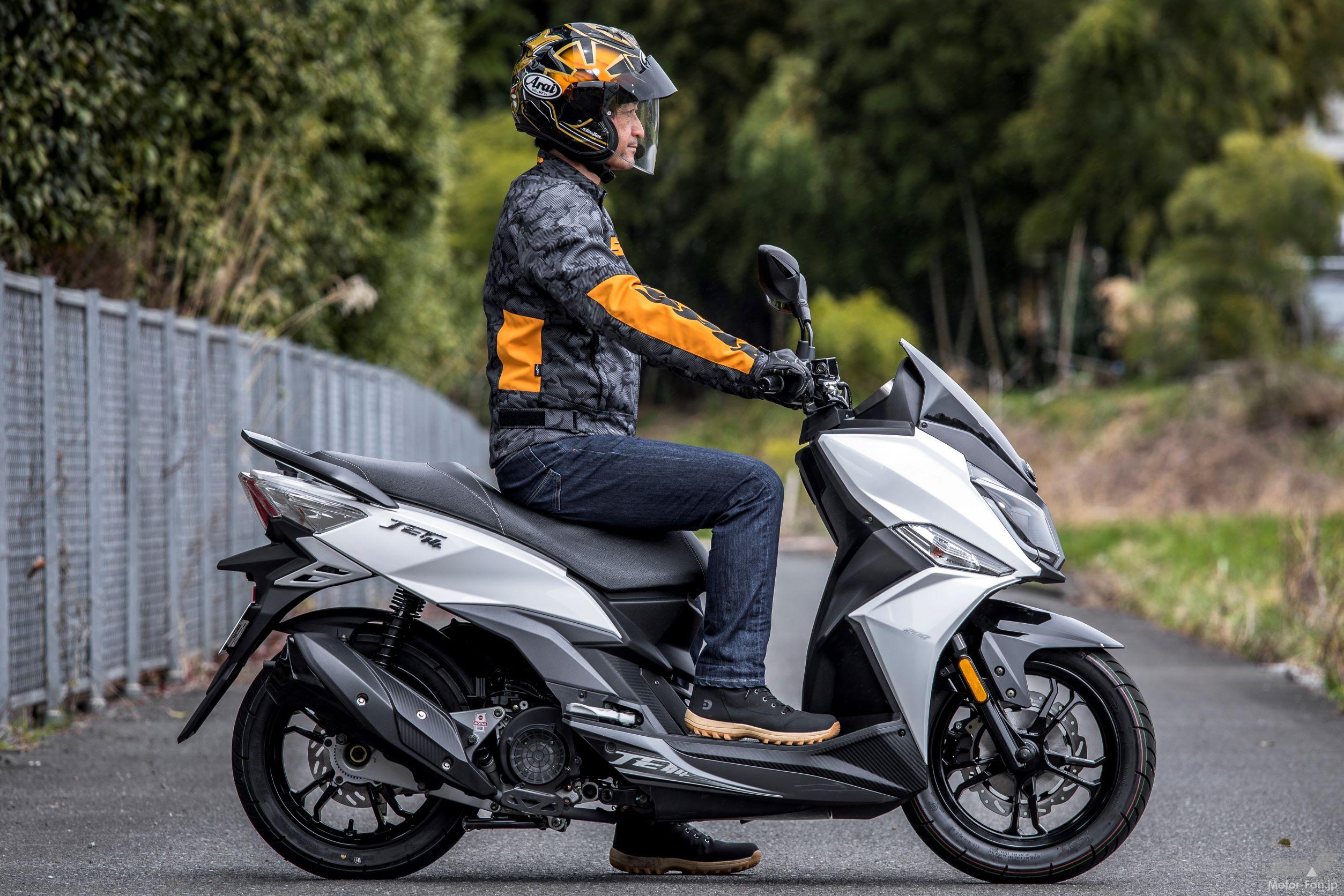 今回試乗したのは、台湾メーカーSYMのJET14 200だ。車名に惑わされやすいが排気量は169ccで、PCX160(156cc)やマジェスティS(155cc)、NMAX155(155cc)とほぼ同等となる。なお、スタイリング的にはフラットフロアボードを採用していることから、直接のライバルはマジェスティSだろう。