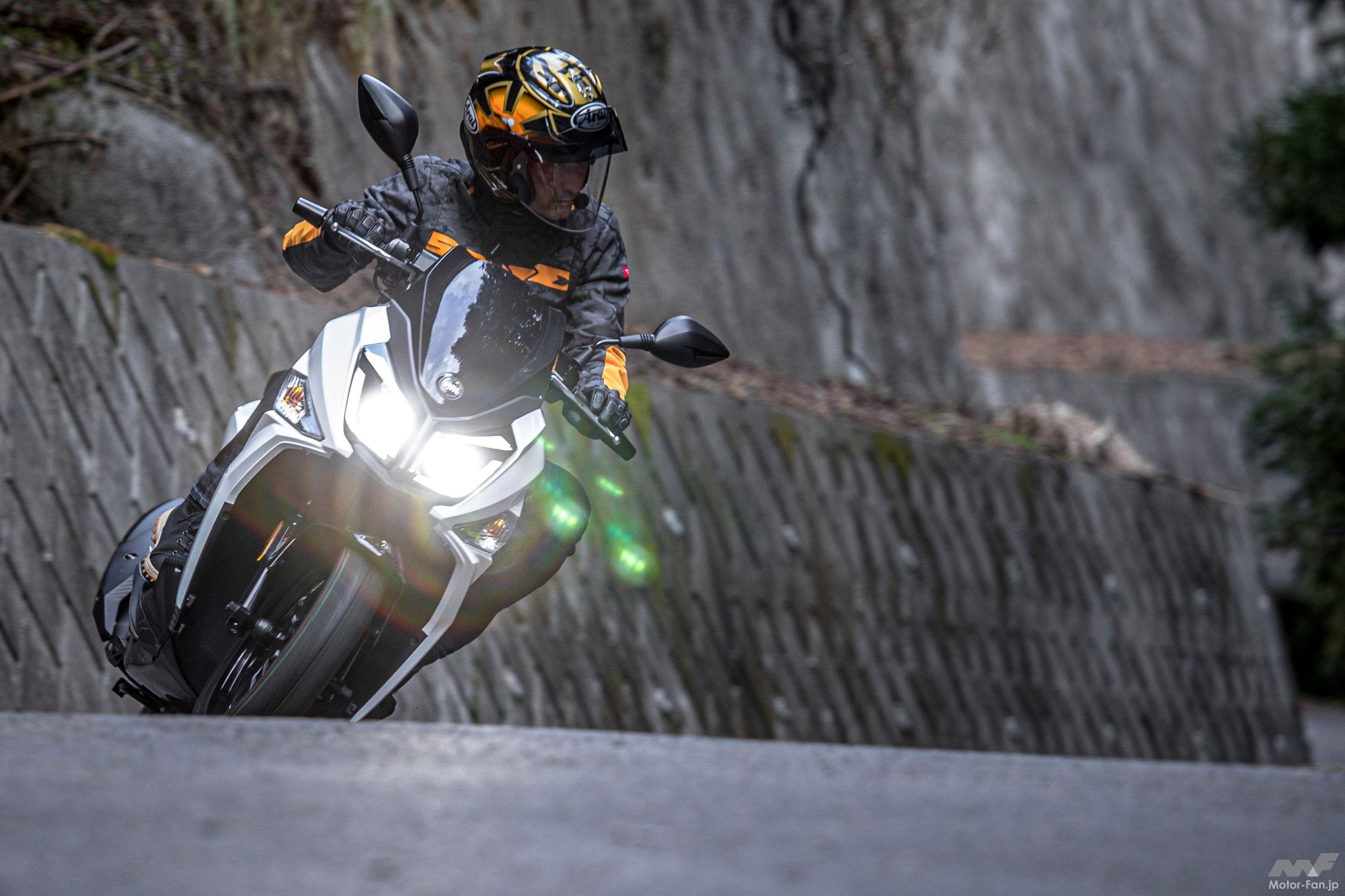 上り勾配のきつい峠道も走ってみたが、スロットルを開けてから実際に加速するまでのタイムラグが原付二種よりも短く、44cc多いだけとはいえ排気量のアドバンテージを痛感する。試乗スケジュールの都合で実際に高速道路は走れなかったが、このパワーフィールから想像するに100km/h巡航はそつなくこなしてくれるだろう。