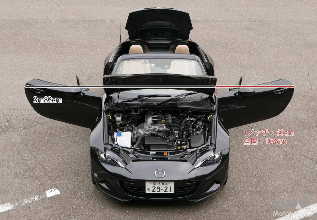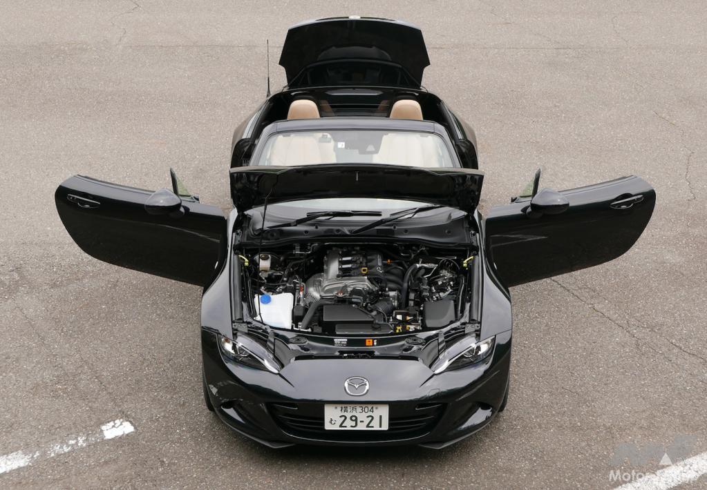 開口部は小さいながら、荷室空間自体は複雑で広い。電動ルーフを備えているものの、通常仕様のロードスターとほぼ同等の荷室容量を確保しているのは立派だ(127ℓ/130ℓ)。荷物を満載していても、一切構わず屋根を開閉できるのはすばらしい設計である。