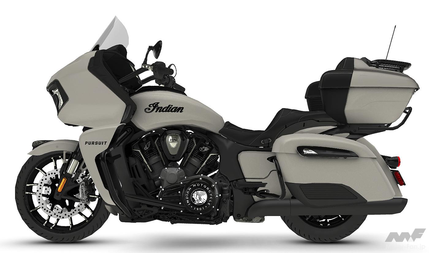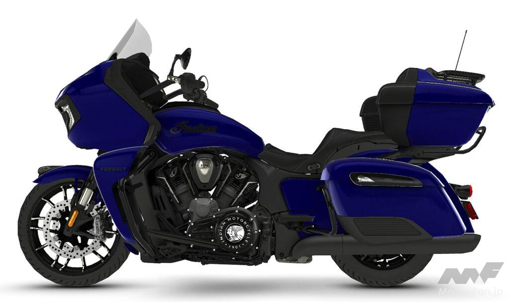 Touringカテゴリーには基本的にロードマスターとパースートの2機種があり、それぞれによりハイグレードなリミテッドモデルが揃えられている。いずれも大型フルフェアリングとテールには大きなトップボックス&左右パニアケースを標準装備する長距離ツアラー。ロードマスターはクラシカルなテーストで仕上げられており、空冷タイプの1890cc Thunderstroke 116エンジンを搭載。