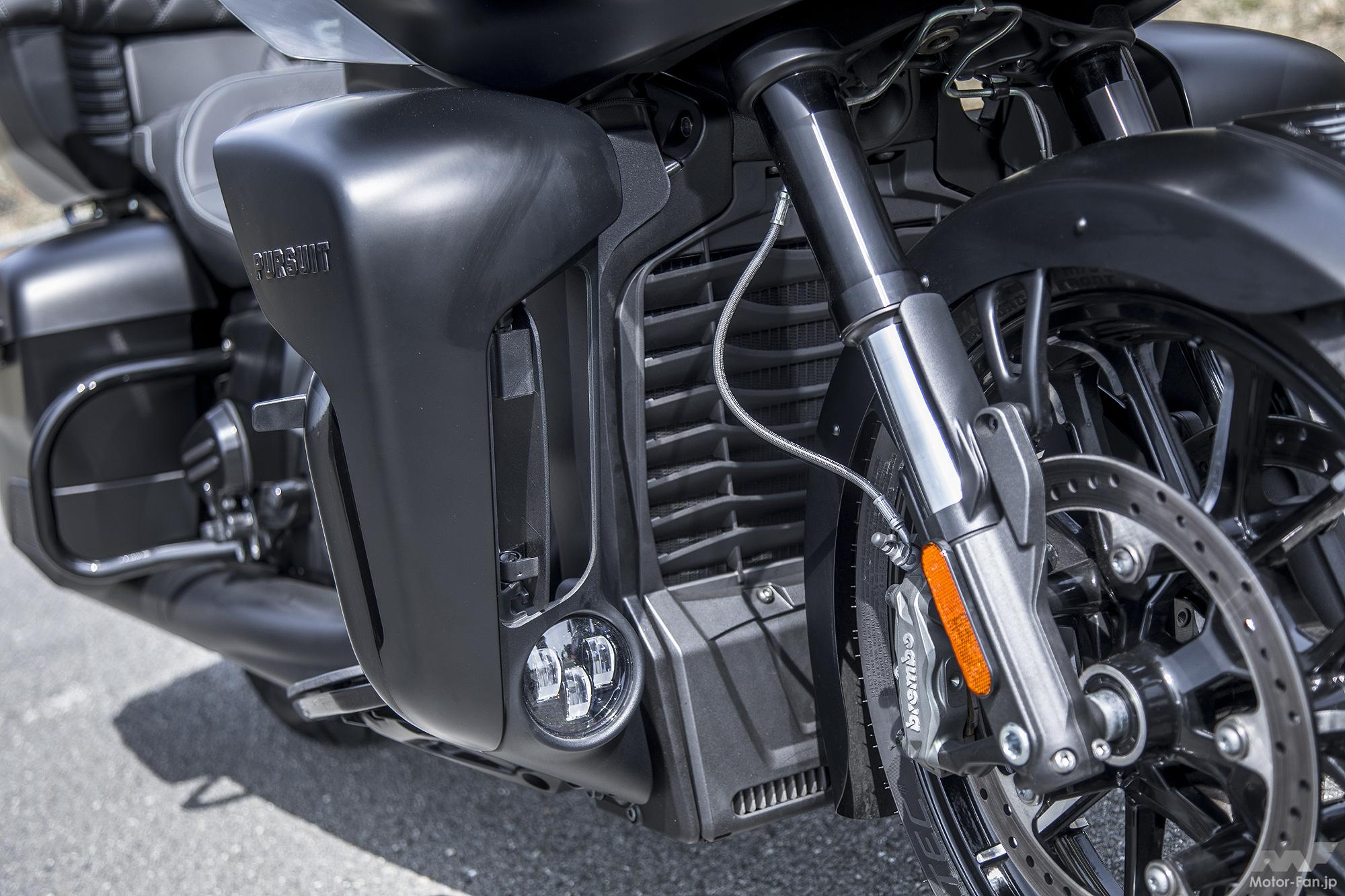 一方パースートは1768ccの水冷PowerPlusエンジンを搭載。外観デザインも含めて全てに最先端テクノロジー満載で仕上げられているのが大きな相違点。