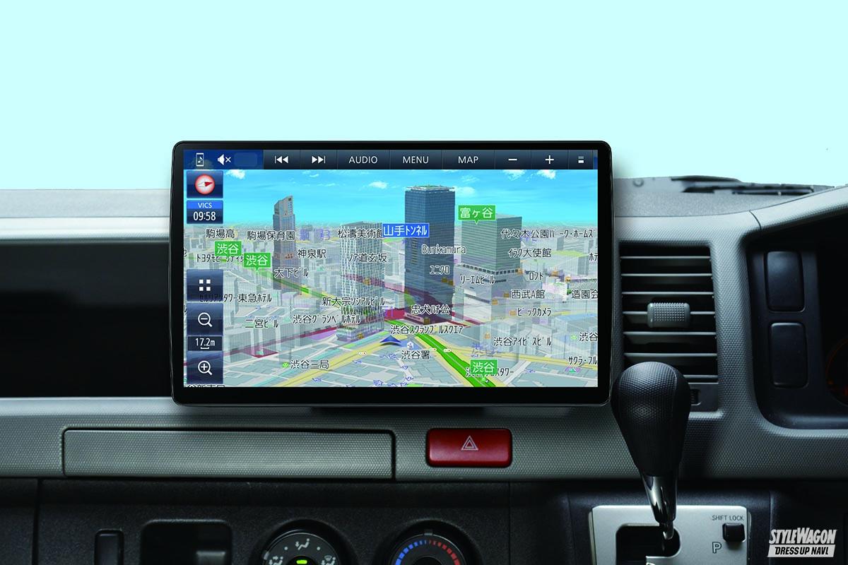 一般的なカーナビに搭載されている7型画面より2倍以上も大きな10型大画面を搭載。それでいながらなんと470車種以上への適合を実現しているのだから驚かされる。