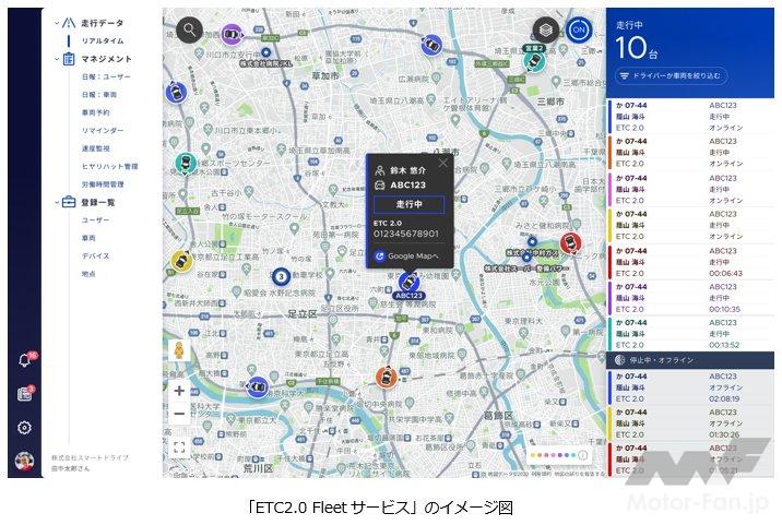 そこで、スマートドライブとパナソニックは、ETC2.0車載器を搭載した車両であれば利用可能な運行管理サービスの実現に向けた共同実証を2021年6月から開始した。既に普及しているETC2.0車載器を活用することで、導入時に新たな専用デバイスを購入するためのコストがかからない、運行管理サービスの実現を目指している。