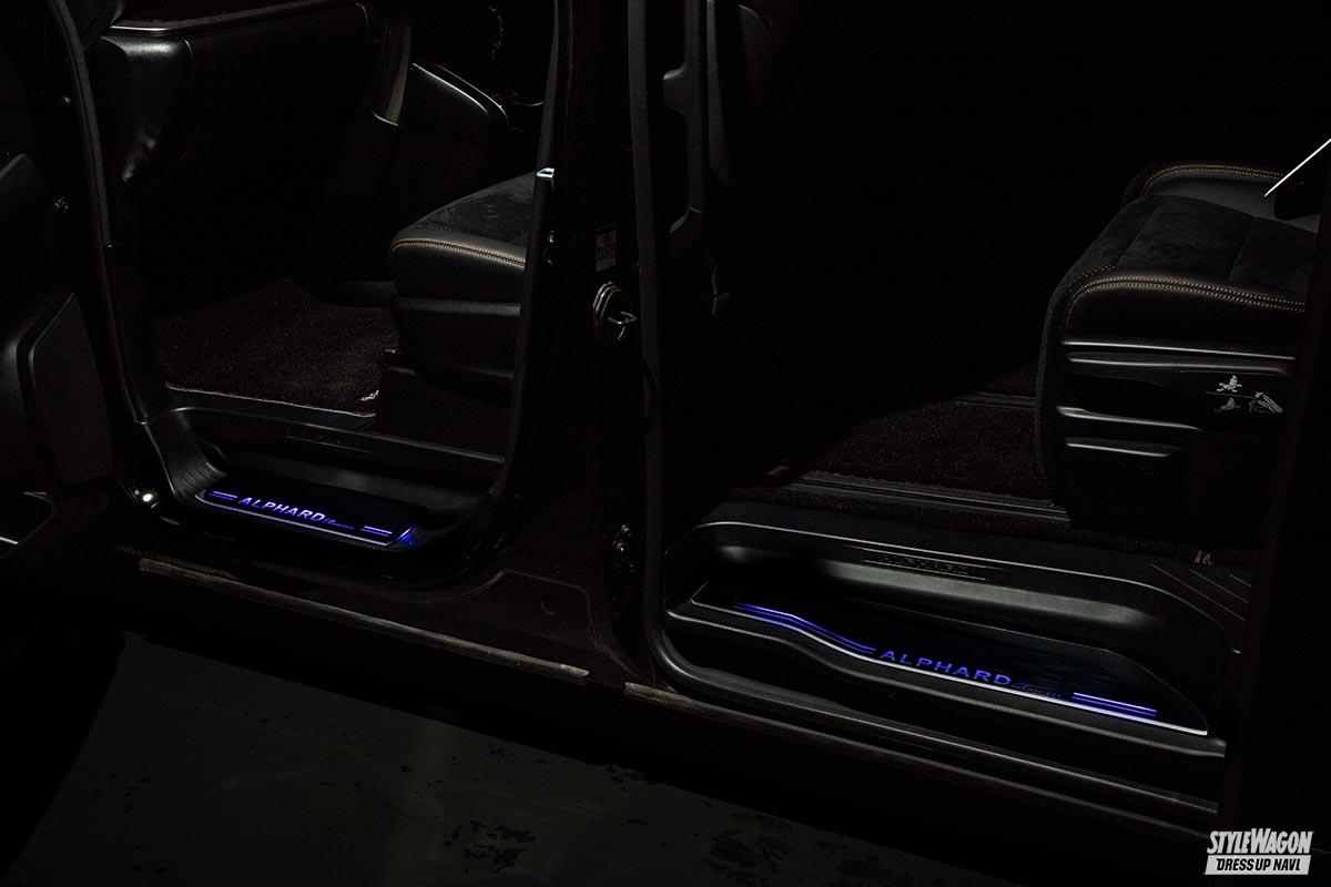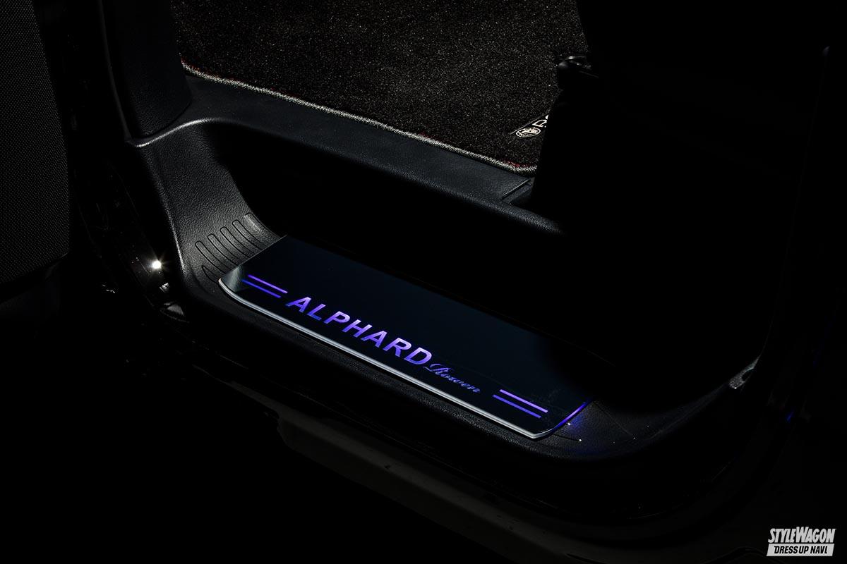 まばゆい輝きとアクションで乗降を優雅にエスコートする【30アルファード専用LEDスカッフプレート】