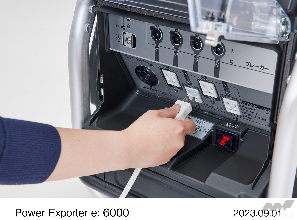 また、現在販売されている「Power Exporter 9000」に対して、高品質な電力供給と200V出力はそのままに約10kgの軽量化が実現されたほか、車両と接続する給電ケーブルの長さを1.2mから2.1mへ伸長するなど、使い勝手の向上が図られている。