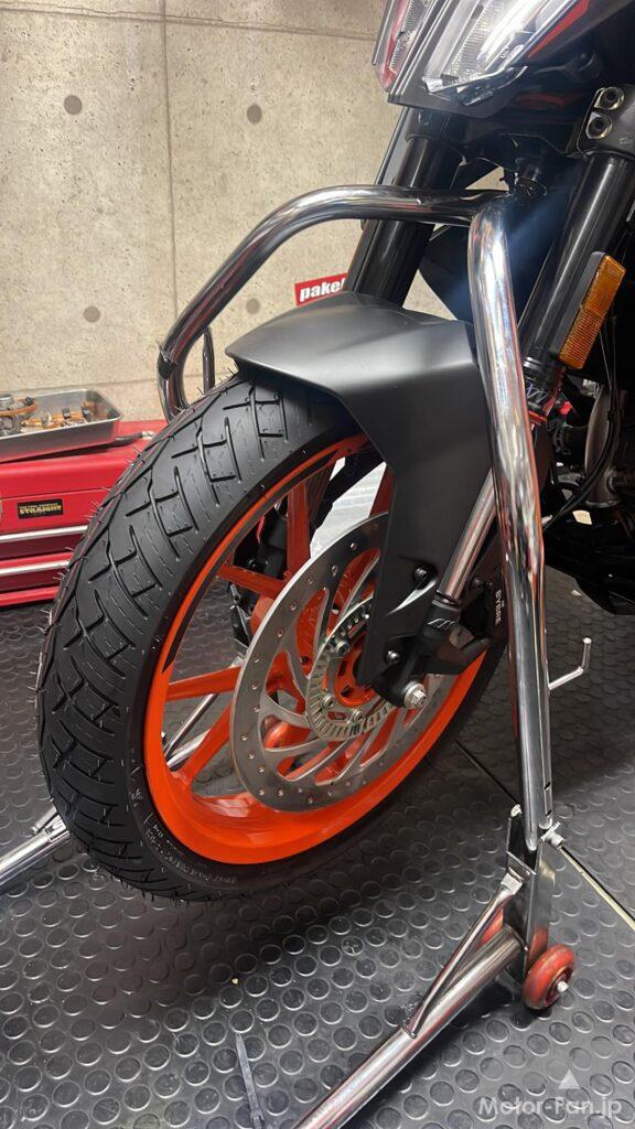これはCBR250Rでも使っているタイヤで、ライフが長くグリップ感が好みなのだ。しかもバイアスなため安い!(重要)