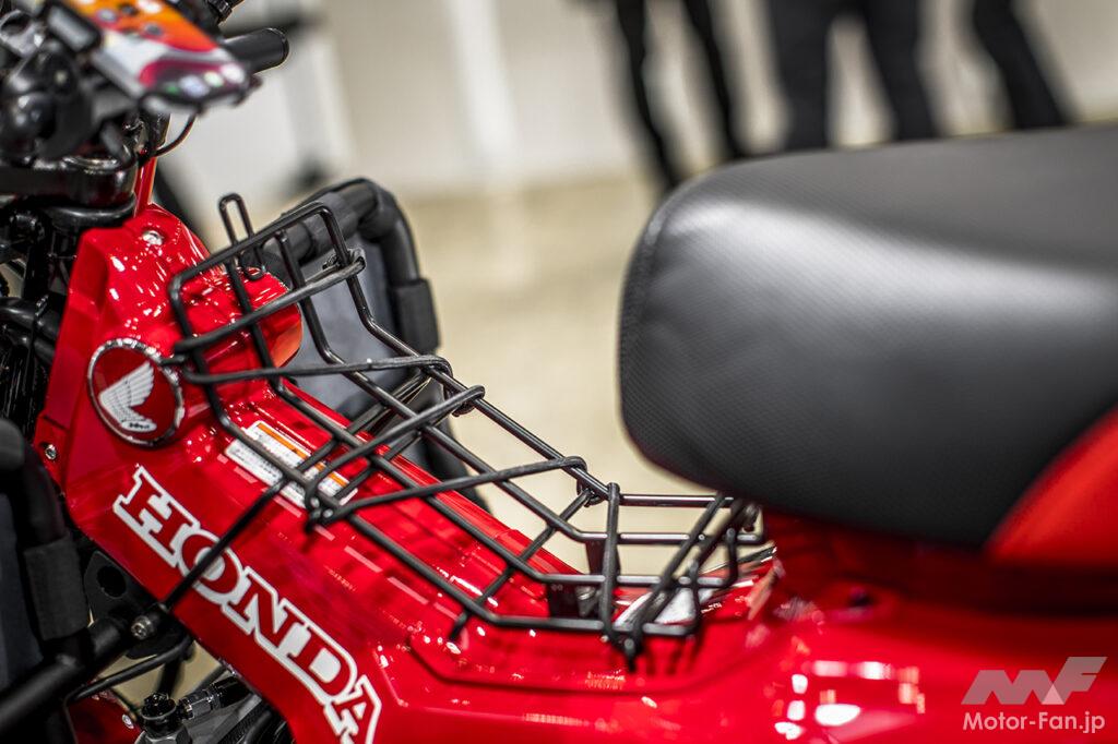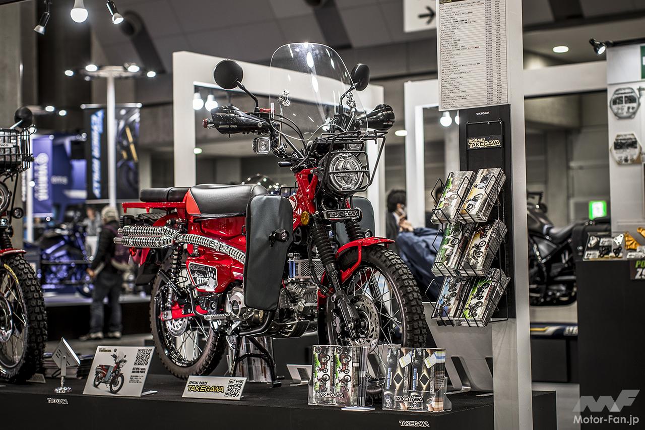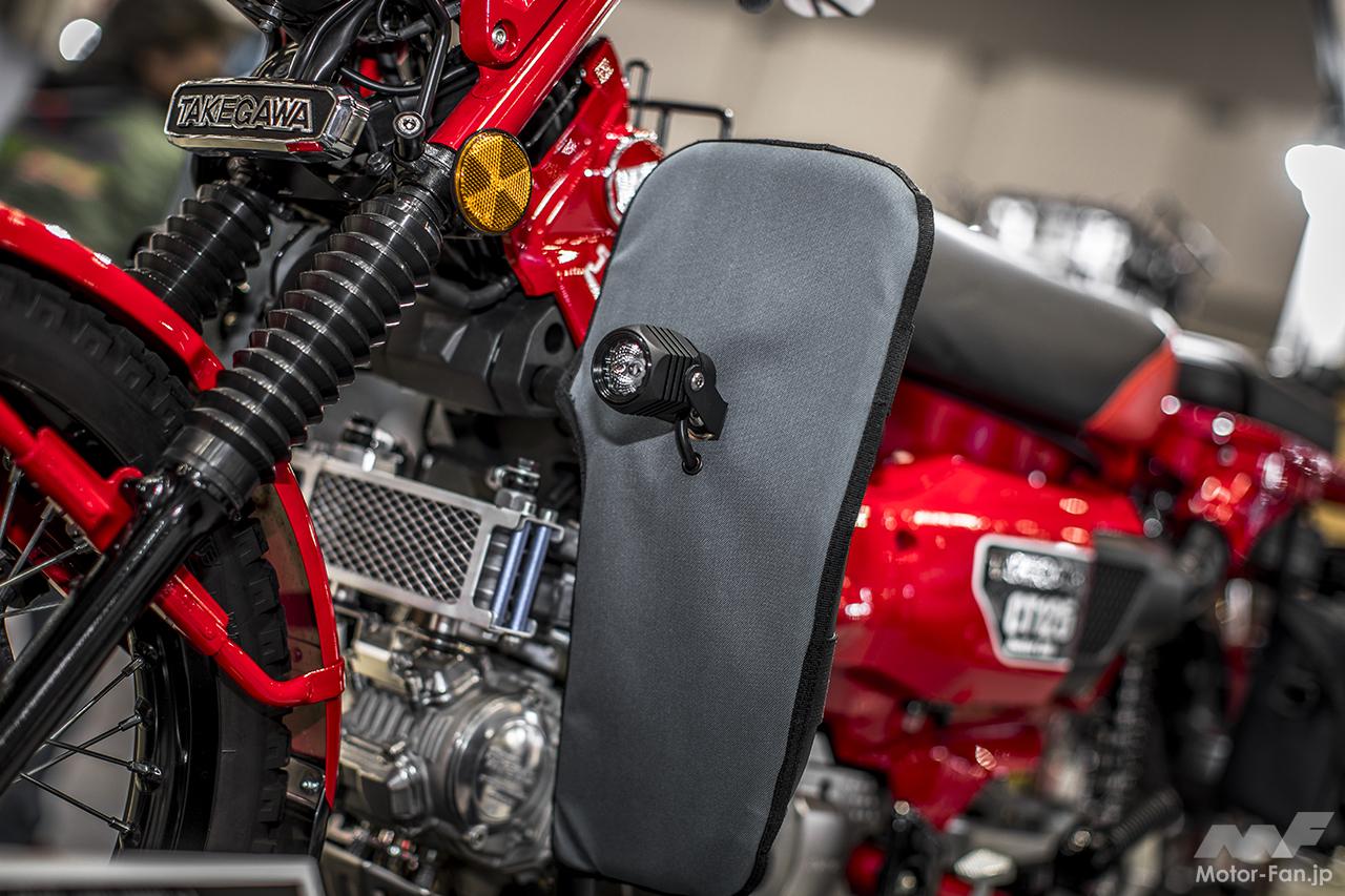 アウトドアやソロキャンプに大人気のホンダ・CT125ハンターカブ。写真はモンキーカスタムでおなじみのパーツメーカー「SP(スペシャルパーツ)武川」がプロデュースした、豪華なCT125ハンターカブ改。SP武川製パーツをフルに活かし、カスタム度と利便性を大幅に引き上げているのがポイントだ。