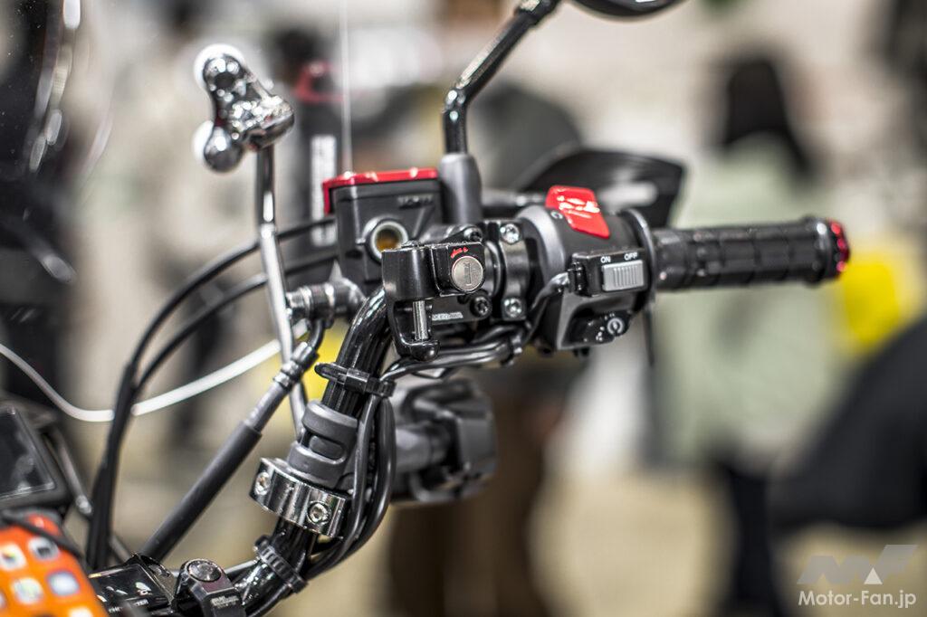 フロントにはヘッドライトガード、フロントキャリア、スクリーンキット、ナックルガード、ステアリングステムエンブレムキットを組み合わせ、存在感と実用性をアップ。リアキャリアにはピリオンシートを装着し、パッセンジャーの快適性と安全性を確保。フロントの両サイドには、転倒時の車体ダメージを軽減し、足元の快適性もアップするレッグバンパー&シールドキットをコーディネイト。