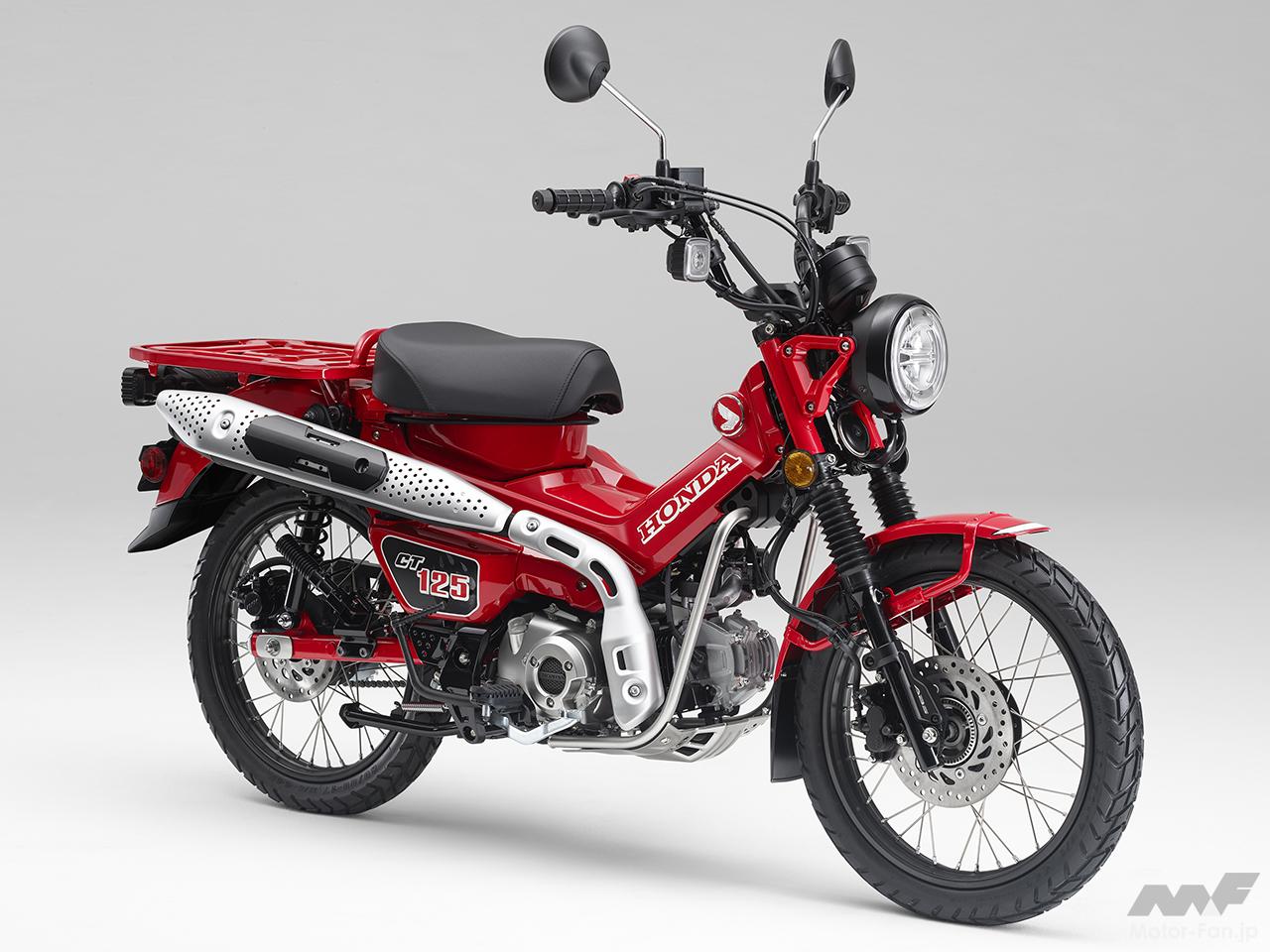 スーパーヘッド4V+Rコンボキット181cc(シルバー/ビッグスロットルボディー) 25万1900円 スーパーオイルポンプキット 6930円 LEDフォグランプキット3.0(950)(2個入/レッグバンパー用) 1万7380円 レッグバンパー&シールドキット(GRAY) 3万6080円 EXCEL社製17インチアルミワイドホイールリムキット 7万2600円 スーパーマルチTFTメーター 4万9500円 アルミチェーンガード(マットシルバー) 7150円 ナックルガード(ブラック) 7480円 ステアリングステムエンブレムキット(CT125用) 5280円 ピリオンシート(300×300/ブラック) 7920円 クッションシートカバー(ブラック/レッド) 4180円 ヘルメットホルダーセット(いじり防止ボルト付属) 3960円 モバイルホルダー 2530円 Zミラーセット(ショート&ミドルアーム付) M10 P1.25 逆ネジ 4180 円 ヘッドライトガード(ブラック塗装) 8580円 フロントキャリア(ブラック塗装) 1万780円 センターキャリアキット(ブラック塗装) 1万780円 アジャスタブルサイドスタンド 1万7380円 ビレットワイドステップキット(シルバー) 1万8480円 アルミビレットレバー(可倒式/ブレーキレバー) 1万6280円 リアショックアブソーバー(2本セット/ブラック塗装) 1万2650円 スクランブラーマフラー(政府認証) 4万9500円 ※価格はすべて税込