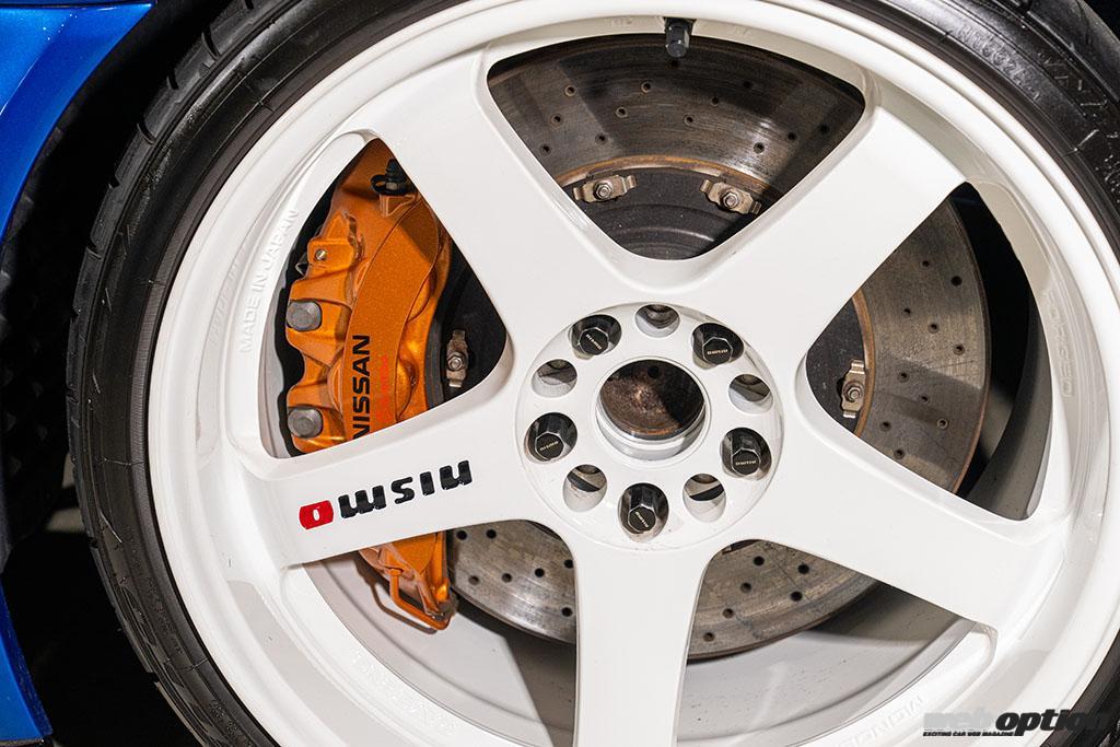 ブレーキはR35GT-Rの2017年モデル純正品を前後に投入。ホイールは19インチのニスモLM-GT4(10.5J+15)をセットしている。