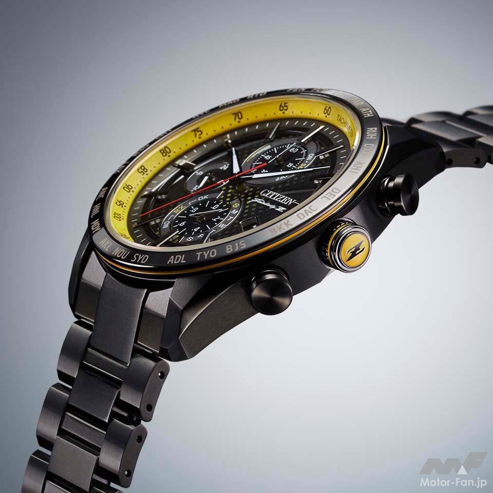 カラーはフェアレディZのNEWボディ「イカズチイエロー」と「セイランブルー」と同色の2種類。文字板の中央は、ハイウェイ路面のアスファルトをイメージしたマットな仕上がり。光沢感のあるシルバーインデックスを採用し、スポーティーでシャープな印象を強調しているのもポイントだ。