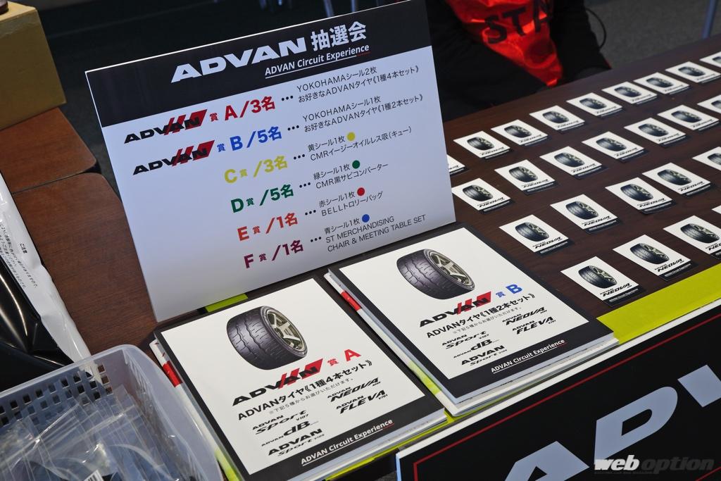 豪華景品が当たる抽選会も見逃せない。特賞はアドバンタイヤ(銘柄は選択可能)の1台分セット!! その他、BBQセットやトロリーバッグなど、走行会の参加費(2万5000円/横浜ゴムのタイヤ装着ユーザーは2万円)を超えるレベルのパーツ&グッズが多数用意されていたのだ。