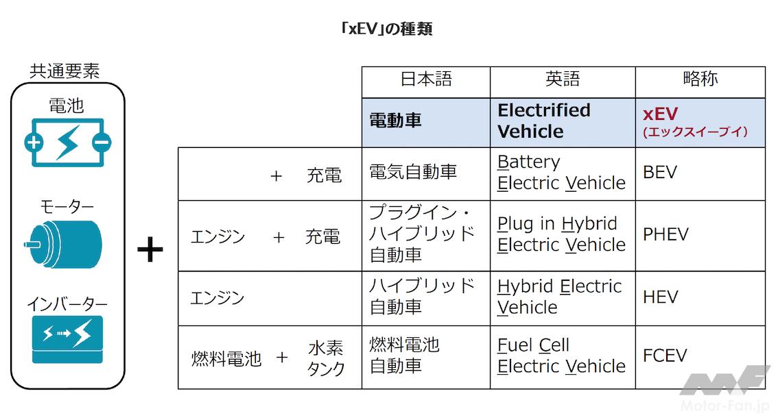 このトヨタの判断を理解するキーワードこそ「xEV」であり、経済産業省もホームページ上で一般向けにxEVという呼び名と考え方をアピールしていたが、メディアはHEV(へ・ぶ)ともBEV(べ・ぶ)とも表記せず、純粋な電気自動車をEV(イーブイ)と呼び続けてきた。
