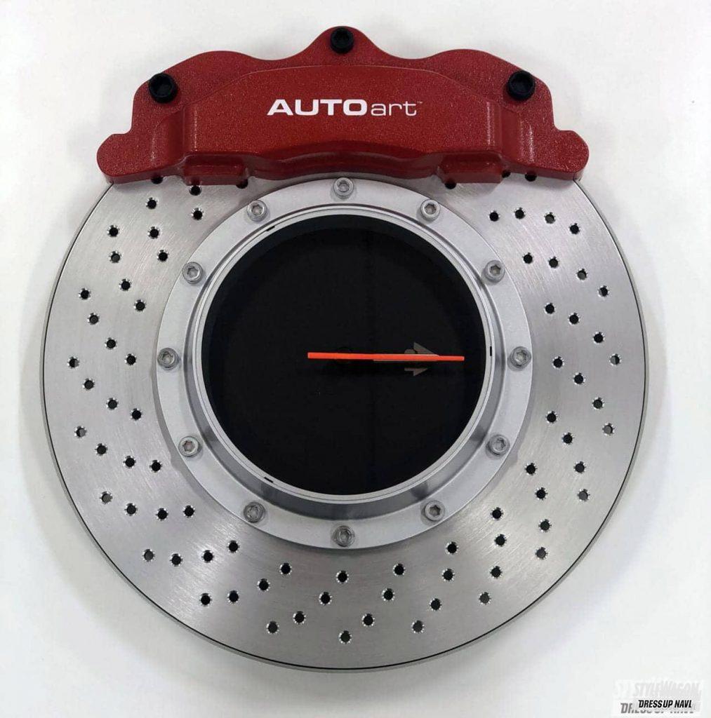 コチラはキャリパーとドリルドローターのセット。……って違います。よ~く見ると、中央部分に針が見えますね。そうです、時計です。名称も『ブレーキディスク クロック』。6ポットを連想させる形状なのでインパクトあるのは当然かもしれません(実車でも6ポットキャリパーはナカナカ存在感抜群です)。しかも当製品、ローターはドリルド仕様(ベンチレーテッド仕様にもなっている!)になっていて、ボルトが配されるなどフローティング構造(風)なのも高ポイント。細部を見れば見るほど、唸らされてしまうワケですね。