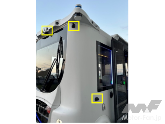「MiCa」は前方に大きなピラー(柱)があり、窓が小さいという特徴がある。 運転手が着席した状態では視界が十分に確保できないため、車外カメラ7台と車内モニター3台を設置して、運転手の死角が補われている。 これにより、保安基準第21条(運転者席から運転に必要な視野の確保を定めるもの)における国内初の基準緩和認定を受けた。