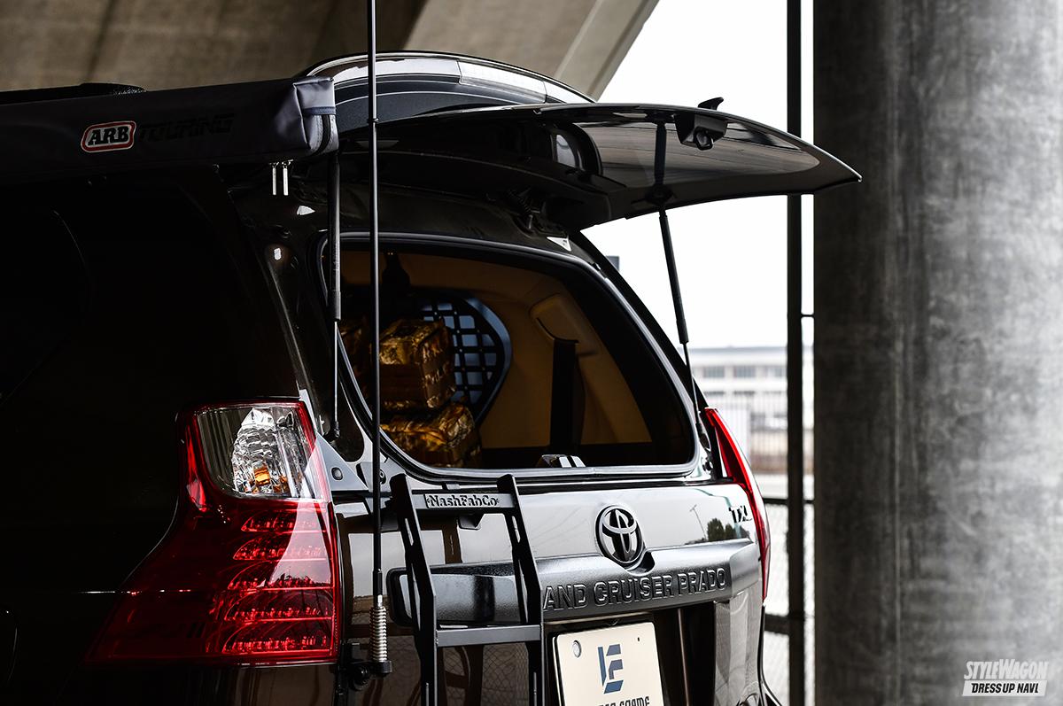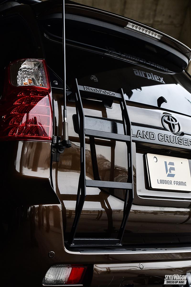 USの新興ブランド「NashFabCo(ナッシュファブコ)」の、スチール製ハーフリアラダー。純正バックドアガラスハッチが利用でき、見た目もシンプル。もちろん装着はボルトオン。耐荷重100㎏と耐久性も十分です。