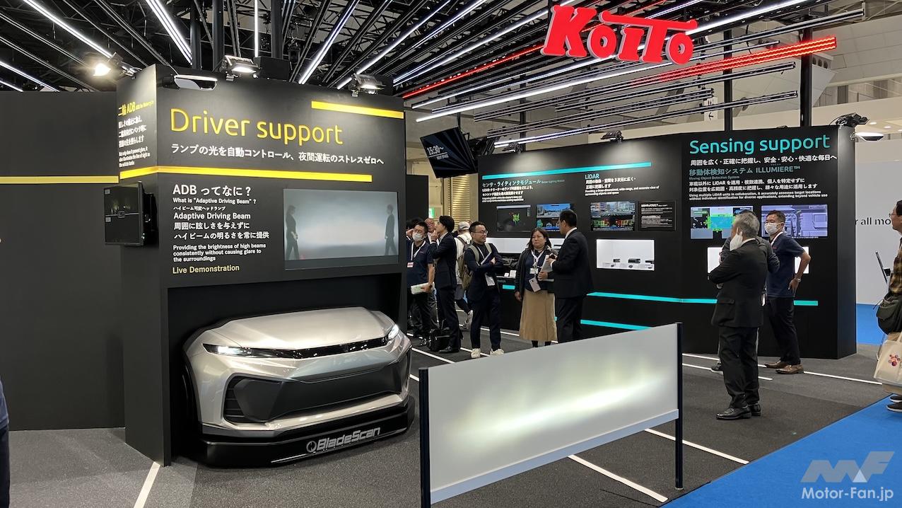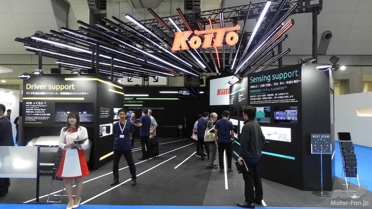 次世代モビリティ社会の安全・安心に向けて、「ドライバーサポート」「センシングサポート」「コミュニケーションサポート」の3つの軸に沿った技術開発を行っている小糸製作所(KOITO)。今回の出展もそれらに沿った内容で、初公開の技術を多数紹介している。