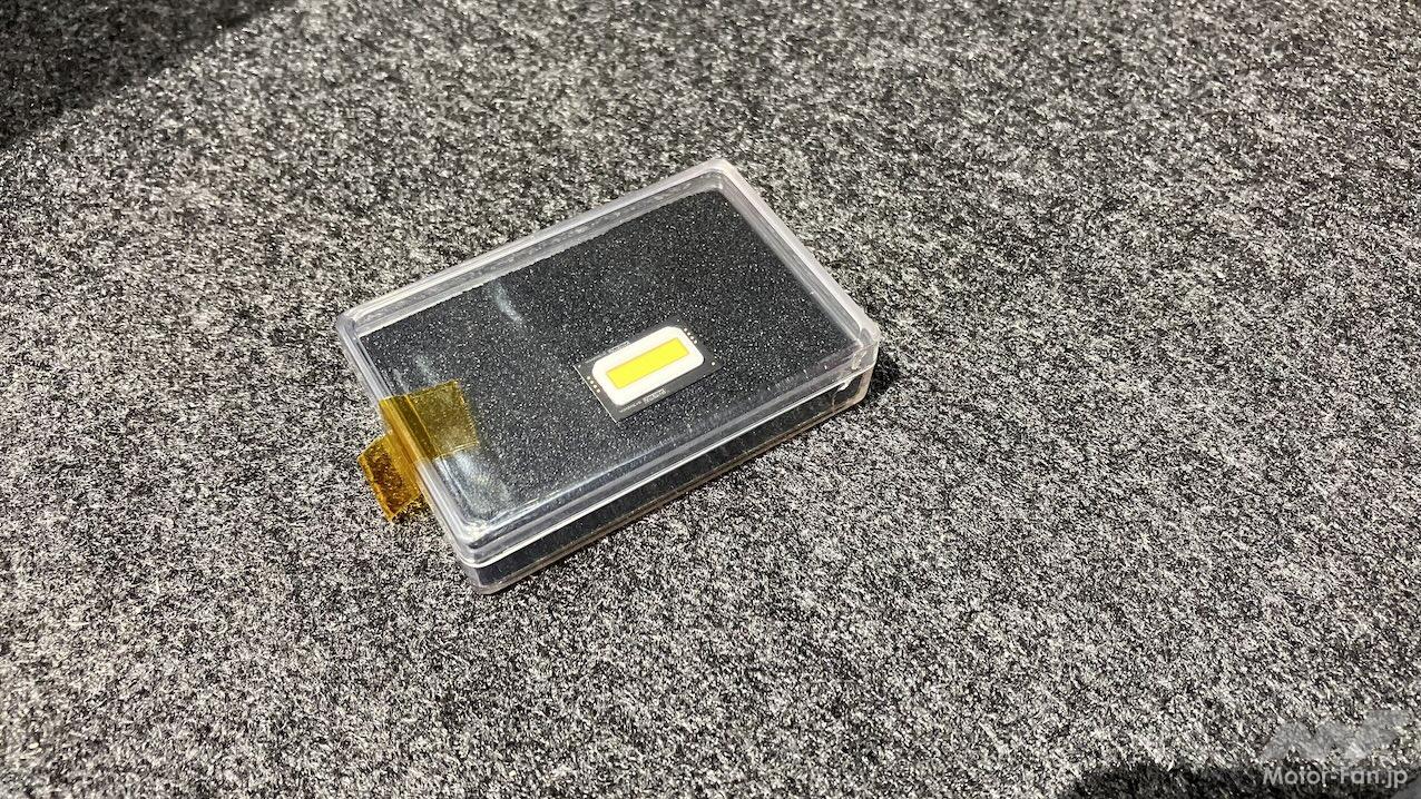 3つの領域で紹介をおこなっている今回の出展。初公開が目白押しで、移動体検知システムや、二輪車用ADBも展示している。二輪車用のアダプティブライトは、コーナーで車体を傾けた際などイン側の照射が下がってしまうのを解決。部分的にハイビームで照射するようにして、ライダーにとって、より遠方まで見渡せる照射を実現。しかも、前走車への眩しさを防止をおこなう二輪車初のADBを開発した。