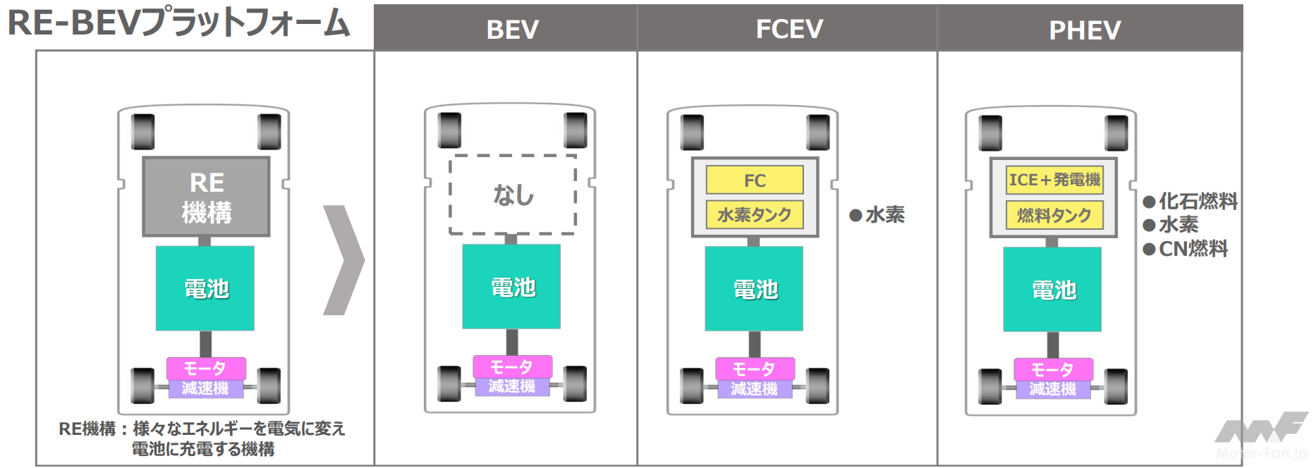 RE機構ベース構成により多様な電動車の構築が可能に
