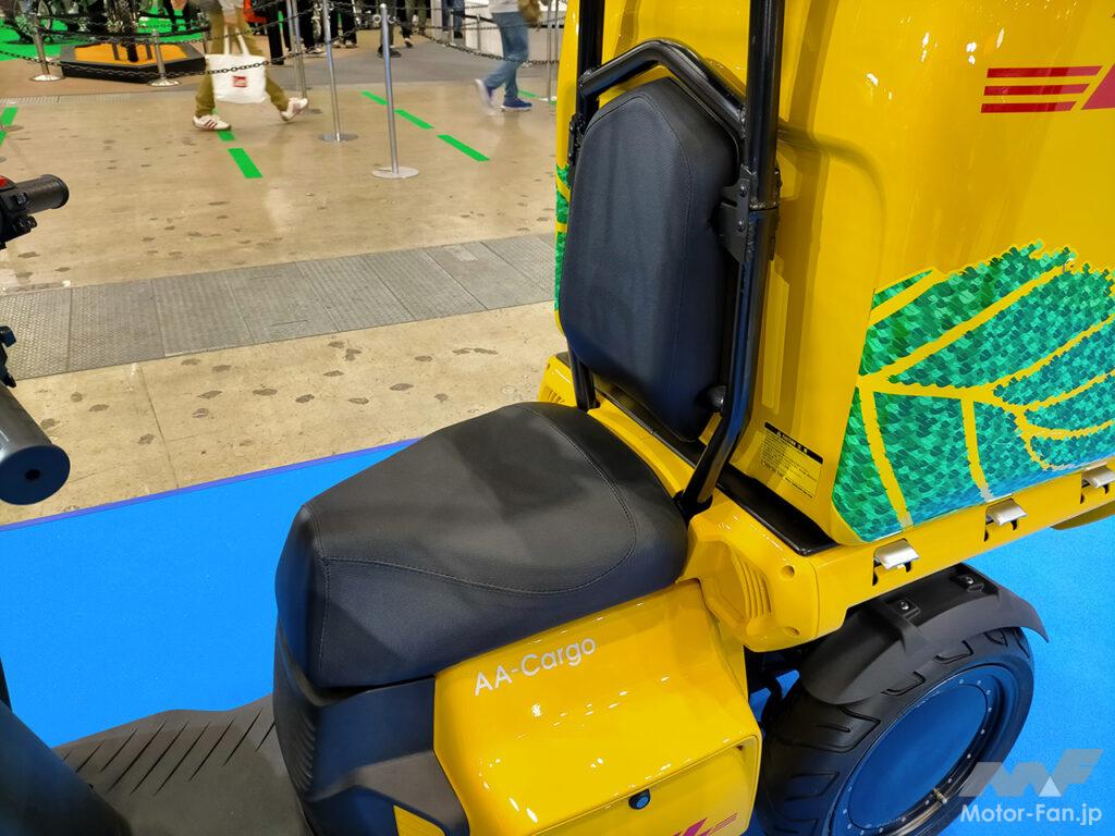 AAカーゴは安定性の高い、フロント1輪・リア2輪の3輪構造を採用。ワイパー&ウォッシャー機能付きの大型スクリーン、大型のルーフ、様々なボックスに対応するフルフラットな荷台が導入されている。