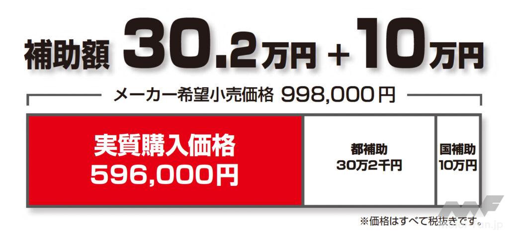 ・東京都の補助 : 電動バイクの普及促進事業→30.2万円