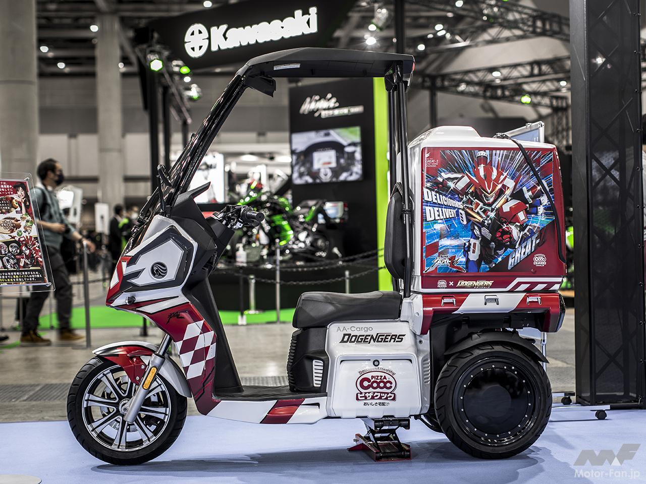 福岡県内を中心に展開する宅配ピザチェーン「ピザクック」の配達用車両。ピザクックでは電動3輪バイクを初めてテスト導入することを記念し、AAカーゴにピザクックのイメージキャラクター「銀河新星 グレイトZ」のラッピングを施した、「グレイトZモデル」を投入。
