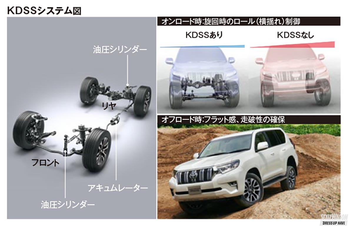 プラドに搭載される1GD-FTV型エンジンは、排気量が2.8ℓで、小型・軽量化を実現したほか、ディーゼルエンジン特有の騒音や振動の低減が図られている。かつて主流だったKDエンジンに対して排気量を200㏄ダウンさせたが、これによる出力低下を回避すべく、高断熱燃焼システムの採用によって熱効率を高め、さらに新開発のターボチャージャーを組み合わせることで、加速性能とレスポンスを高めている。