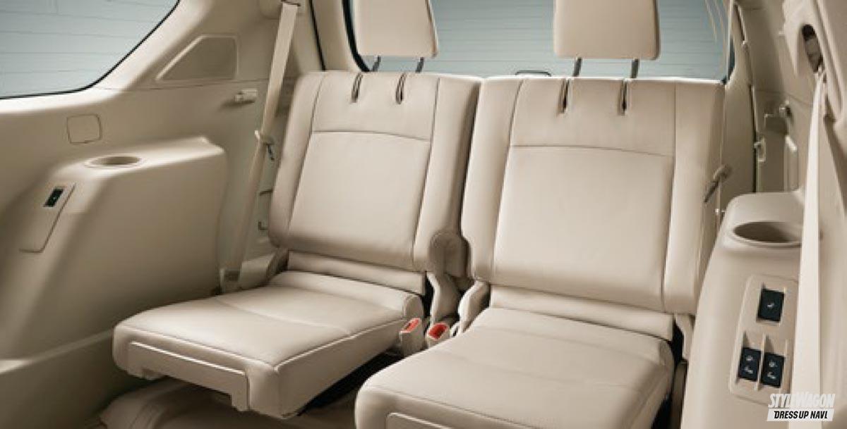 2列目シートは4:2:4分割可倒式で、それぞれ135㎜のスライド機構を装備している。5人乗り、7人乗りともに乗員の数、荷物のサイズや量に応じて多彩なアレンジが行える。