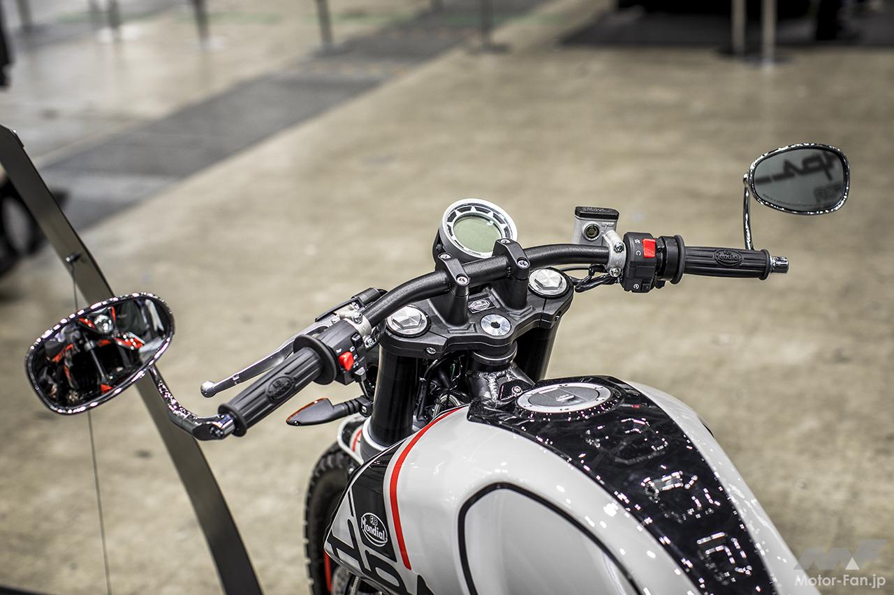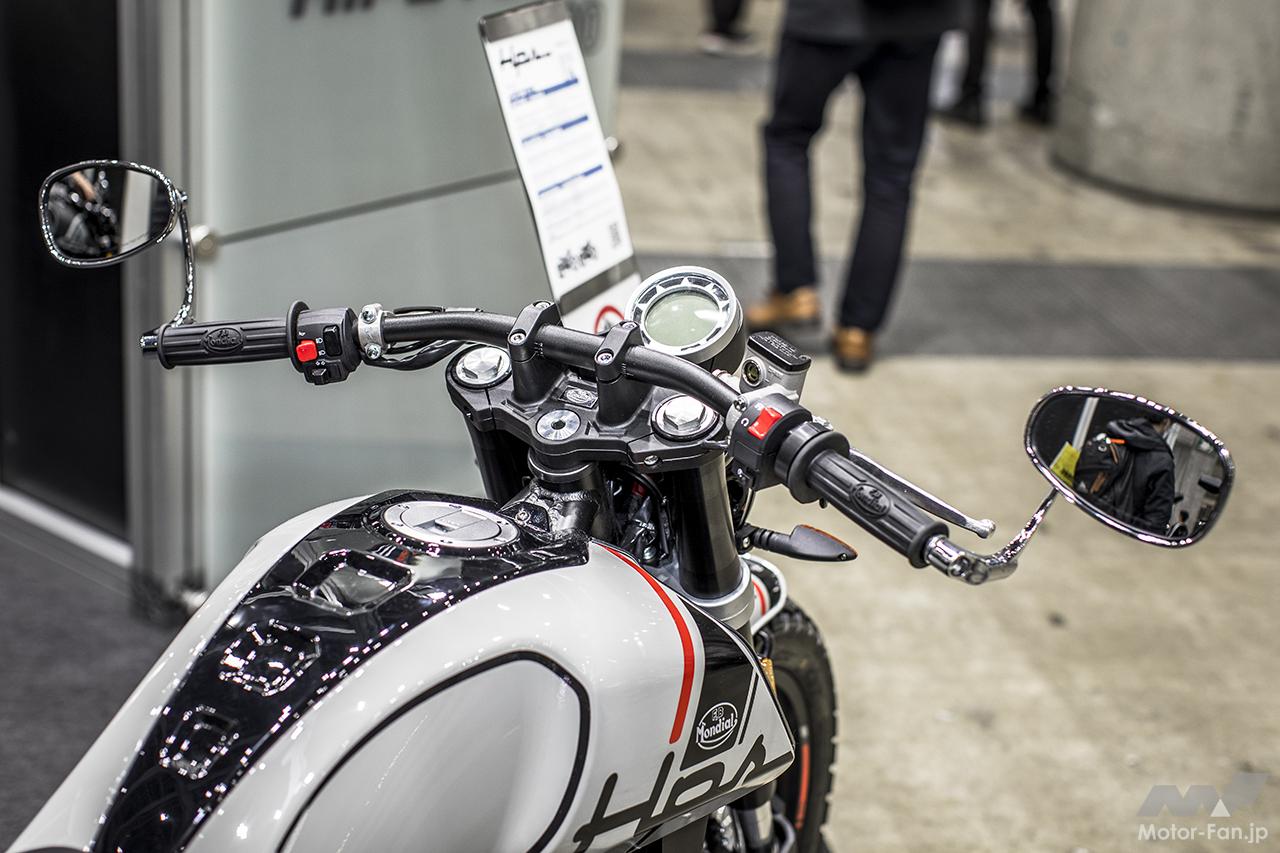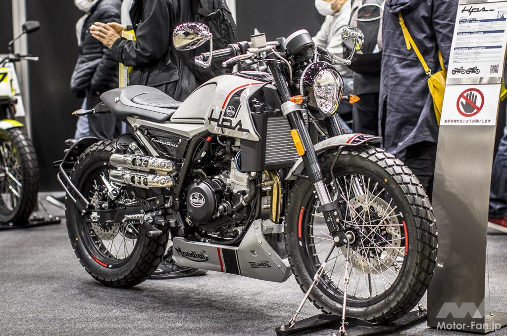 写真は美しいメッキのヒートガードを組み合わせたデュアルアップマフラーなどを装着し、スクランブラースタイルに仕上げられた「Hps300」。ネオレトロなスタイリングと、現代のテクノロジーを融合させているのがポイントだ。