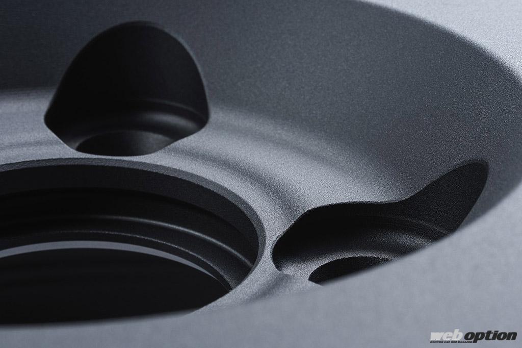 「土踏まず」のようなドーナツ状のえぐり加工が実施されたハブ接合面も注目。圧着面圧を外周部に集中させることで応力の集中を避け、ホイール強度と取り付け剛性の向上が図られているのだ。