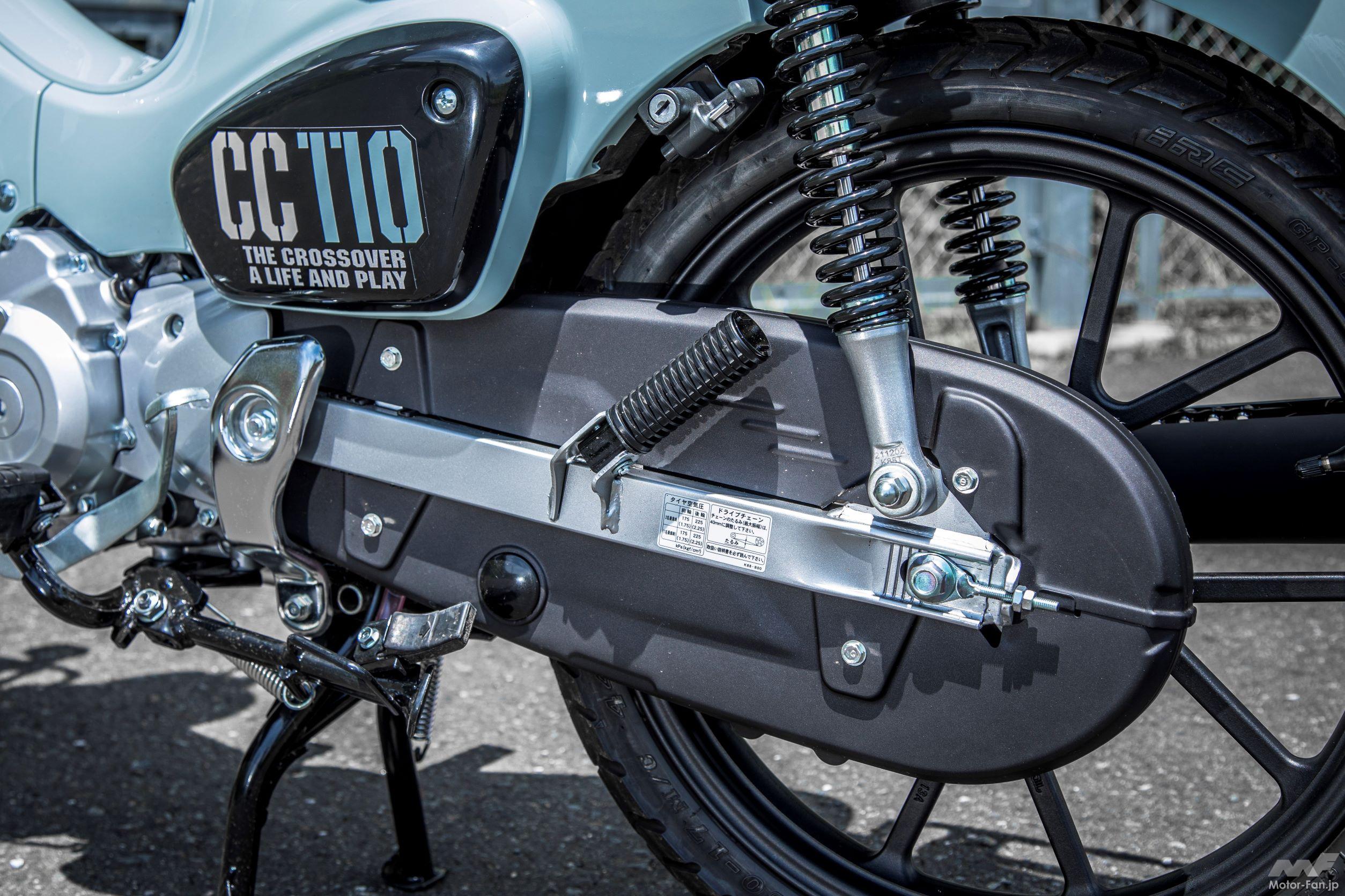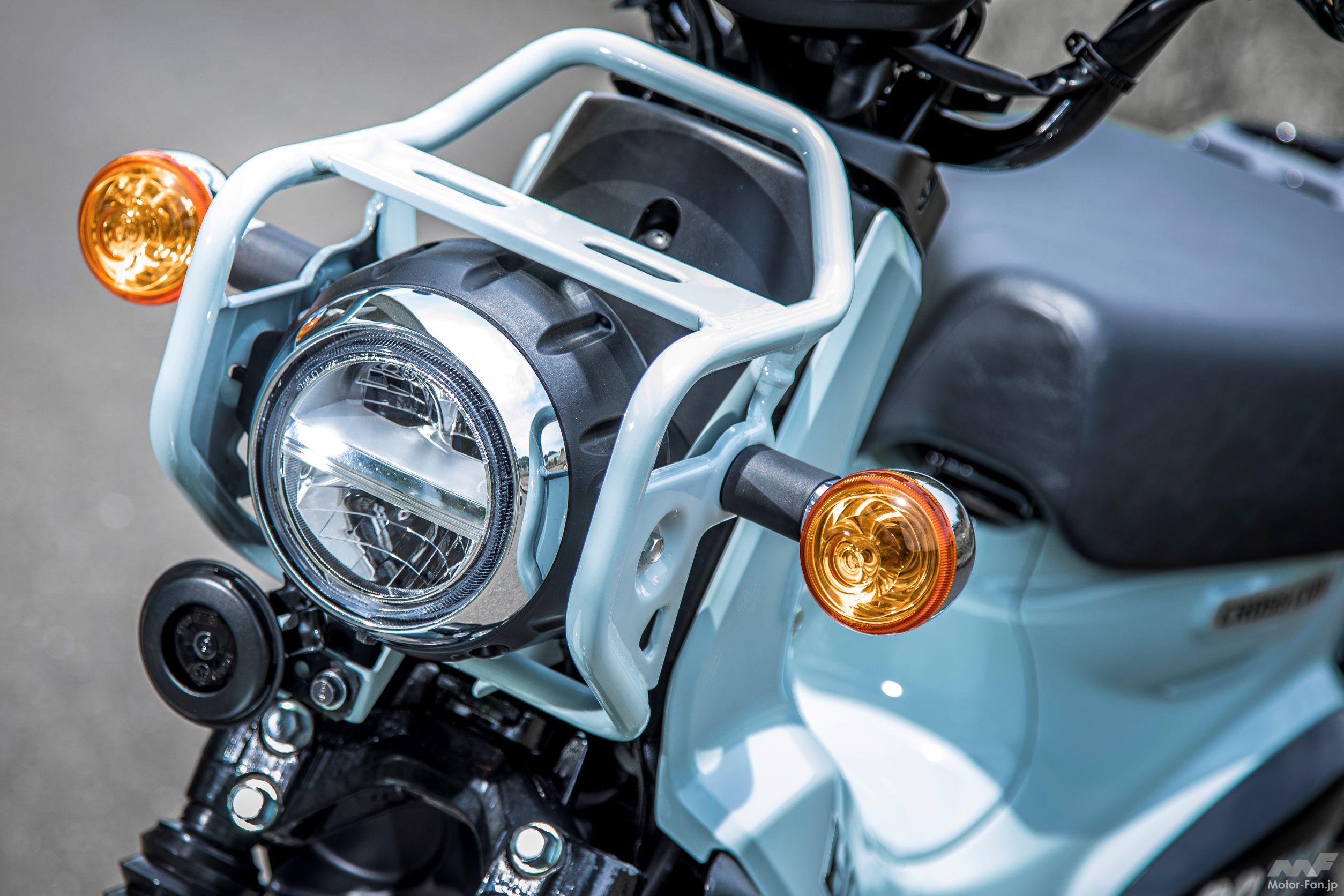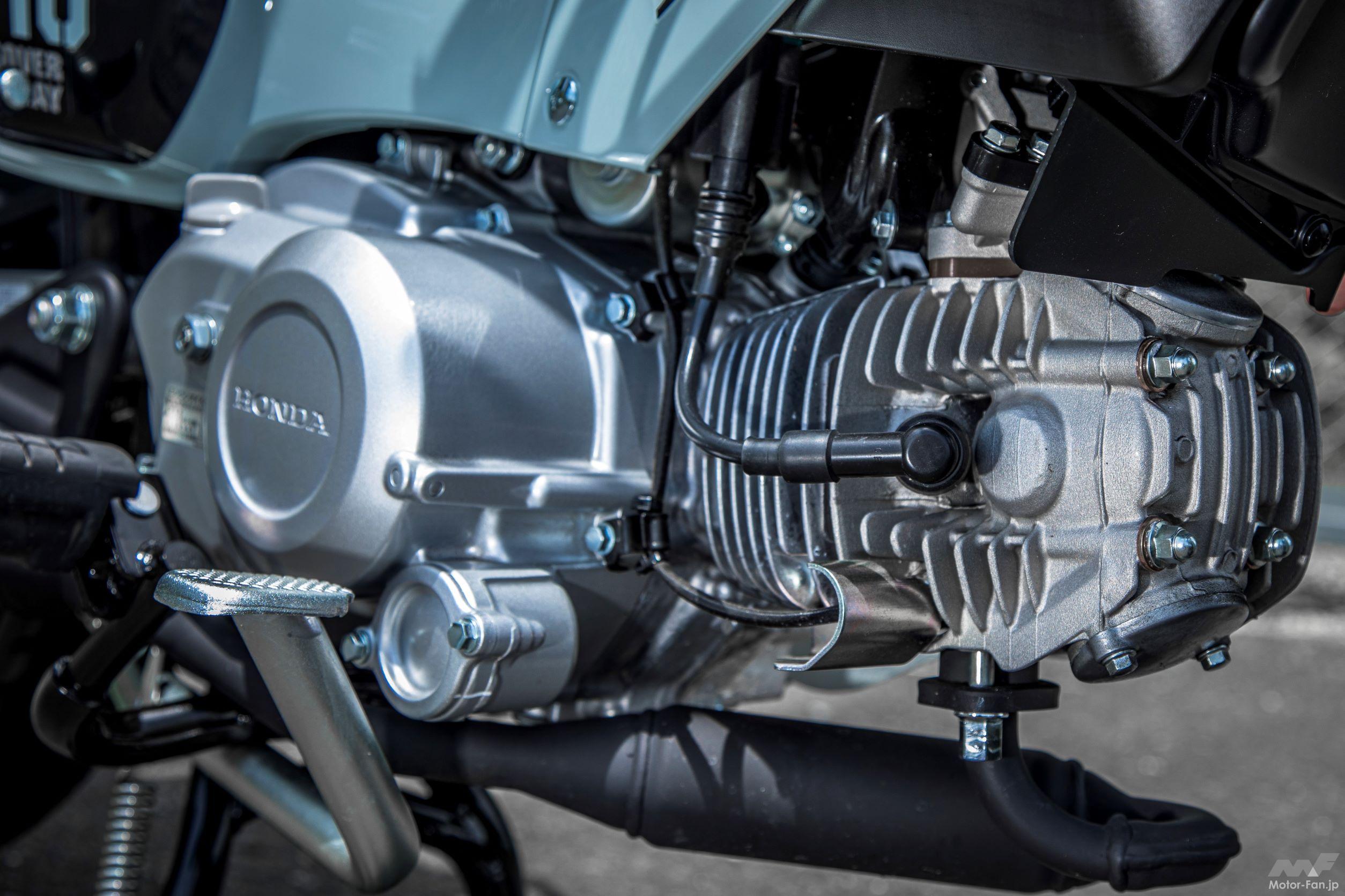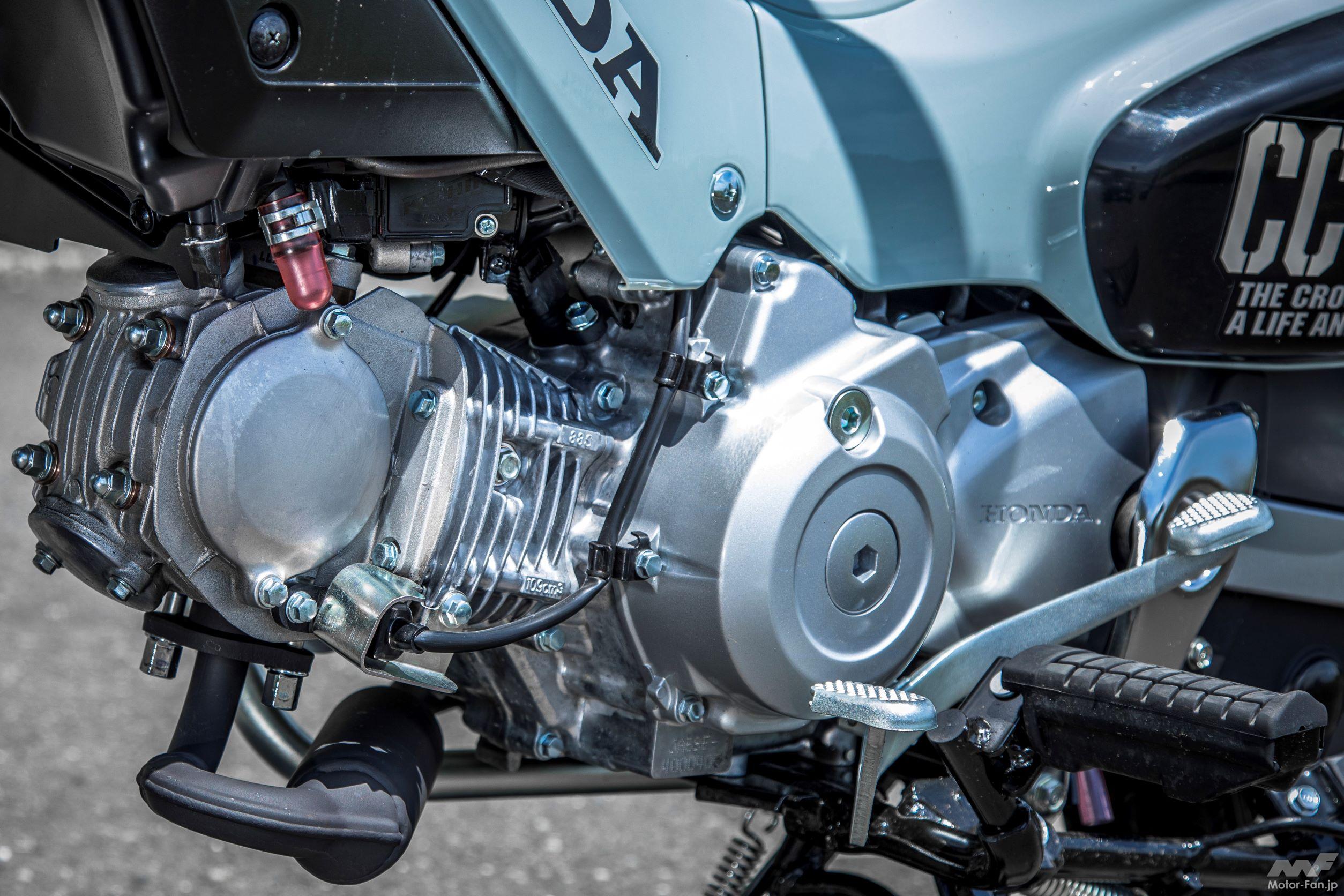 車名・型式 ホンダ・8BJ-JA60 全長(mm) 1,935 全幅(mm) 795 全高(mm) 1,110 軸距(mm) 1,230 最低地上高(mm) 163 シート高(mm) 784 車両重量(kg) 107 乗車定員(人) 2 燃料消費率(km/L) 国土交通省届出値:定地燃費値(km/h) 67.0(60)〈2名乗車時〉 WMTCモード値 67.9(クラス 1)〈1名乗車時〉 最小回転半径(m) 2.0 エンジン型式 JA59E エンジン種類 空冷4ストロークOHC単気筒 総排気量(cm³) 109 内径×行程(mm) 47.0×63.1 圧縮比 10.0 最高出力(kW[PS]/rpm) 5.9[8.0]/7,500 最大トルク(N・m[kgf・m]/rpm) 8.8[0.90]/5,500 燃料供給装置形式 電子式〈電子制御燃料噴射装置(PGM-FI)〉 始動方式 セルフ式(キック式併設) 点火装置形式 フルトランジスタ式バッテリー点火 潤滑方式 圧送飛沫併用式 燃料タンク容量(L) 4.1 クラッチ形式 湿式多板ダイヤフラムスプリング式 変速機形式 常時噛合式4段リターン 変速比 1速 3.142 2速 1.833 3速 1.333 4速 1.071 減速比(1次/2次) 3.421/2.642 キャスター角(度) 27°00´ トレール量(mm) 78 タイヤ 前 80/90-17M/C 44P 後 80/90-17M/C 44P ブレーキ形式 前 油圧式ディスク(ABS) 後 機械式リーディング・トレーリング 懸架方式 前 テレスコピック式 後 スイングアーム式 フレーム形式 バックボーン