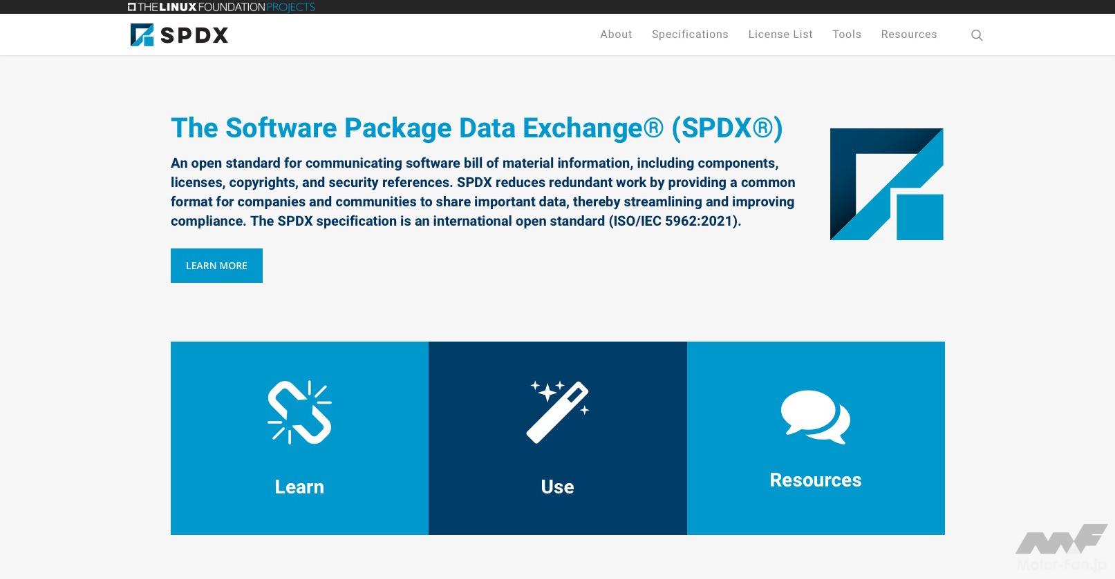 SPDXは、出所、ライセンス、セキュリティー、その他の関連情報を含むソフトウエア部品表情報を伝達するためのオープンスタンダードである。SPDXは、企業やコミュニティーが重要データを共有するための共通フォーマットを提供することで余分な作業を削減、コンプライアンス、セキュリティー、信頼性を効率化し向上させる。