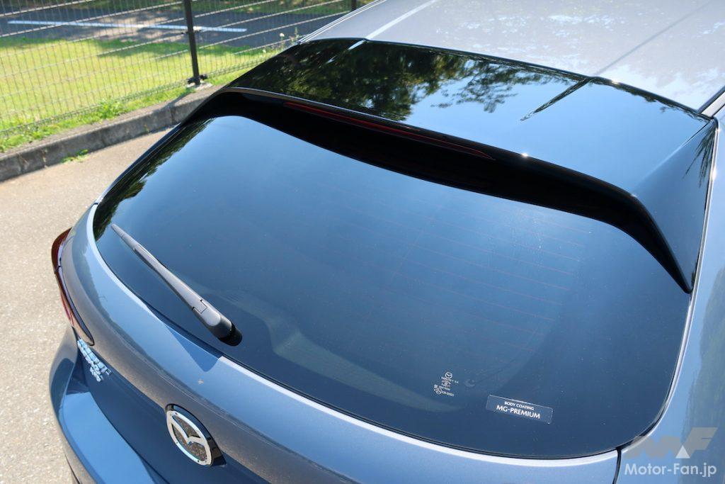 情報としては知っていたが、改めて意識してみると、ルーフの後端にロッドアンテナもシャークフィンアンテナもないことは、MAZDA3のすっきりした美しさにひと役買っていると感じる。アンテナがついていないわけではなくて、リヤガラスに埋め込んでいるのだ。「新世代リヤガラスアンテナシステム」をわざわざ、MAZDA3ファストバックのために開発したのだ。