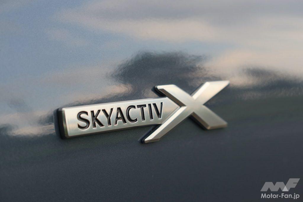 「せっかくX買ったんだからさぁ、もっと差別化してよぉ」という声があったのだろうか。2020年11月の商品改良時に、e-SKYACTIV-X搭載車専用の装備として、フェンダーバッジが追加された。左右のフロントフェンダー上部、フロントドア寄りに「SKYACTIV-X」のバッジが追加されている。デザインの魅力を最大化させるためにルーフアンテナを廃止し、わざわざガラスアンテナを開発したこだわりの持ち主が、「こんな安直なことやる?」というのが正直な感想だ。このクルマの最大のがっかりポイントが、このえげつないフェンダーバッジである。