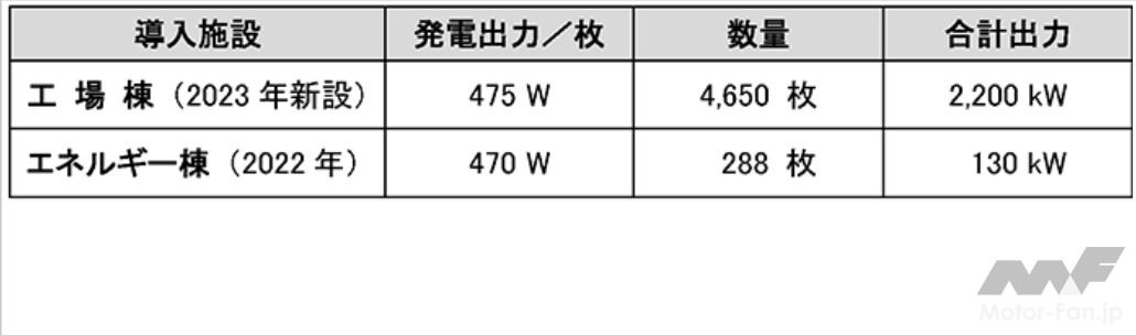 今回新設されたのは475Wの太陽光パネル計4,650枚(2,200kW)。袋井南工場では2022年もエネルギー棟の屋根に太陽光パネルを設置しており、これと合わせた発電出力2,330kWは、国内ヤマハ発動機グループでは最大の発電出力となる。同設備で発電した電力は同工場で使用されるほか、余剰電力は2025年より、中部電力パワーグリッド社の送配電ネットワークを介してヤマハ発動機の他事業所に送電する計画とされている。この余剰電力の活用によりCO₂削減効果を上積みし、地球温暖化防止に貢献する。