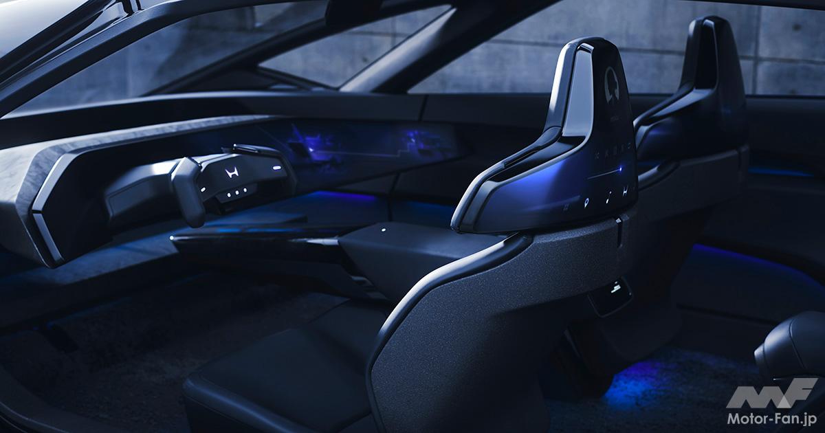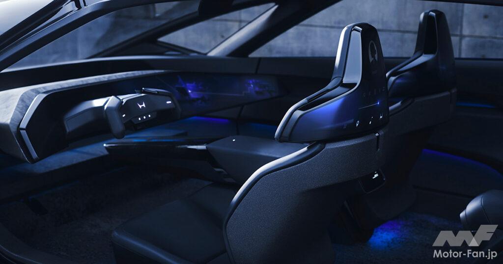 さらに、ステア・バイ・ワイヤの採用に加え、Honda独自のロボティクス技術で培った姿勢制御などのモーションマネジメントシステムをさらに進化させることで、さまざまな走行シーンにおいてドライバーの思い通りのコントロールの実現が目指され、0シリーズのフラッグシップとして、EV時代における究極の「操る喜び」を追求している。また、内外装にサステナブルマテリアルを採用するなど、ユーザーや環境との共鳴を呼ぶ、独創的なモデルが目指される。