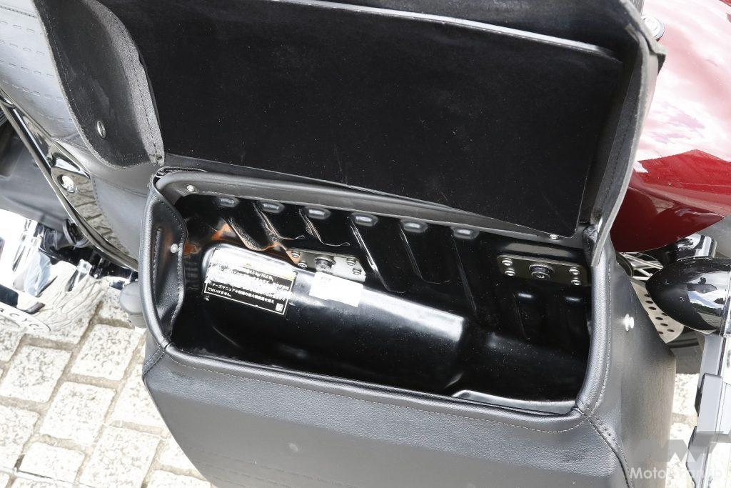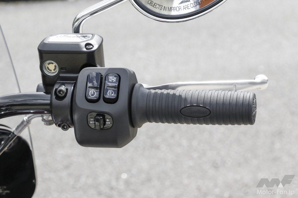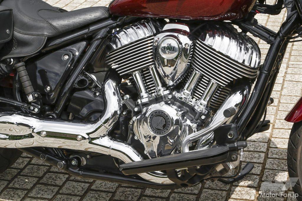いかにも冷却フィンが美しい空冷の横置きVツインエンジンは、スーパーチーフリミテッドだけがクロームメッキ仕上げされている。総排気量は1890cc、トルクは162Nmを誇る。ステップはボードタイプが採用されている。