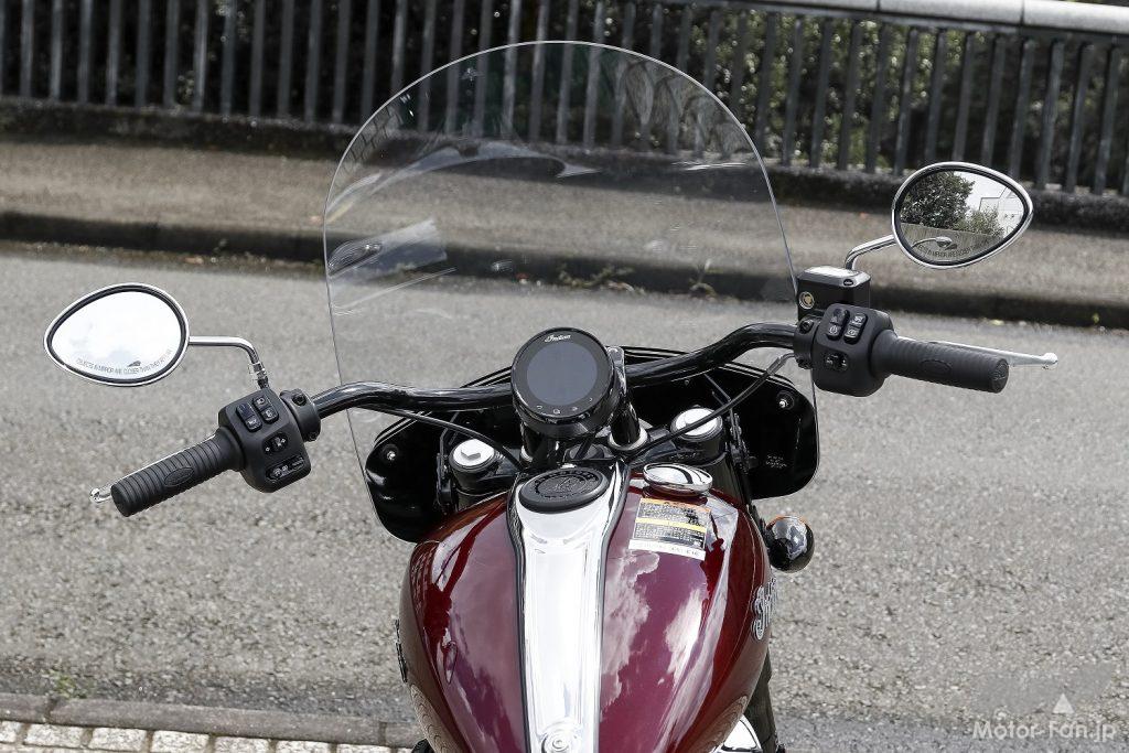 ブラックアウトされたパイプバーハンドルはワイドだが、少し手前に引き絞られていて、ポジションに違和感はない。いかにも風防然とした大型クリアスクリーンも印象的だ。