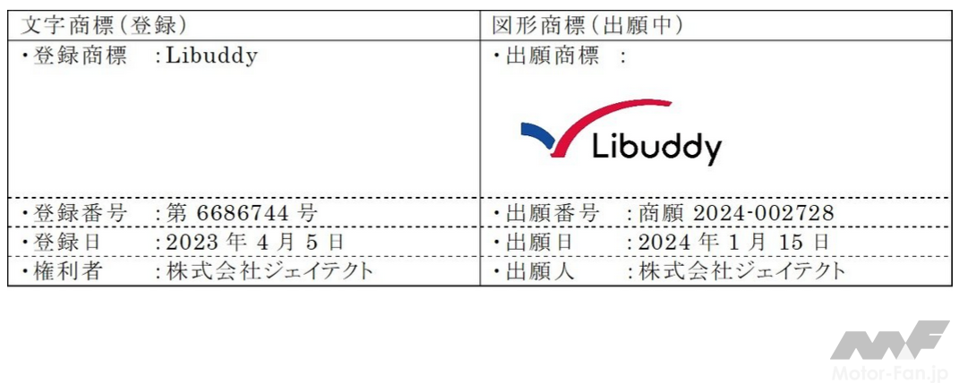 図形部分については、Libuddyの「L」をチェックマークに模し、低温を想起させるブルーと高温を想起させるレッドでカラーリングした意匠によって、①-40℃~85℃の低温環境・高温環境いずれも使用できる業界トップの動作温度範囲、②自己発熱(ジュール発熱)に伴う劣化の大幅抑制で実現した、高負荷連続使用時での高耐久性、③発火しにくい材料構成による優れた安全性、④自動車分野で培った高い信頼性が視覚的に表現されている。