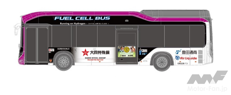 | 運行区間 | 金山駅-イオンモール熱田間(運行事業者:名阪近鉄バス株式会社) ※平日2台のうち1台、休日3台のうち1台が燃料電池バス(トヨタ自動車『SORA(ソラ)』) |