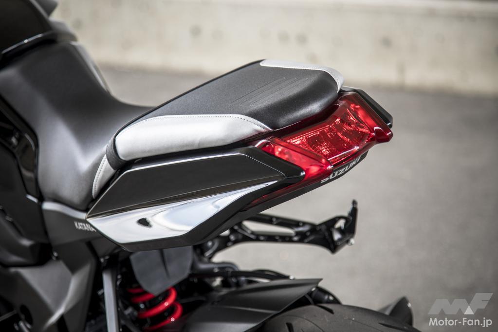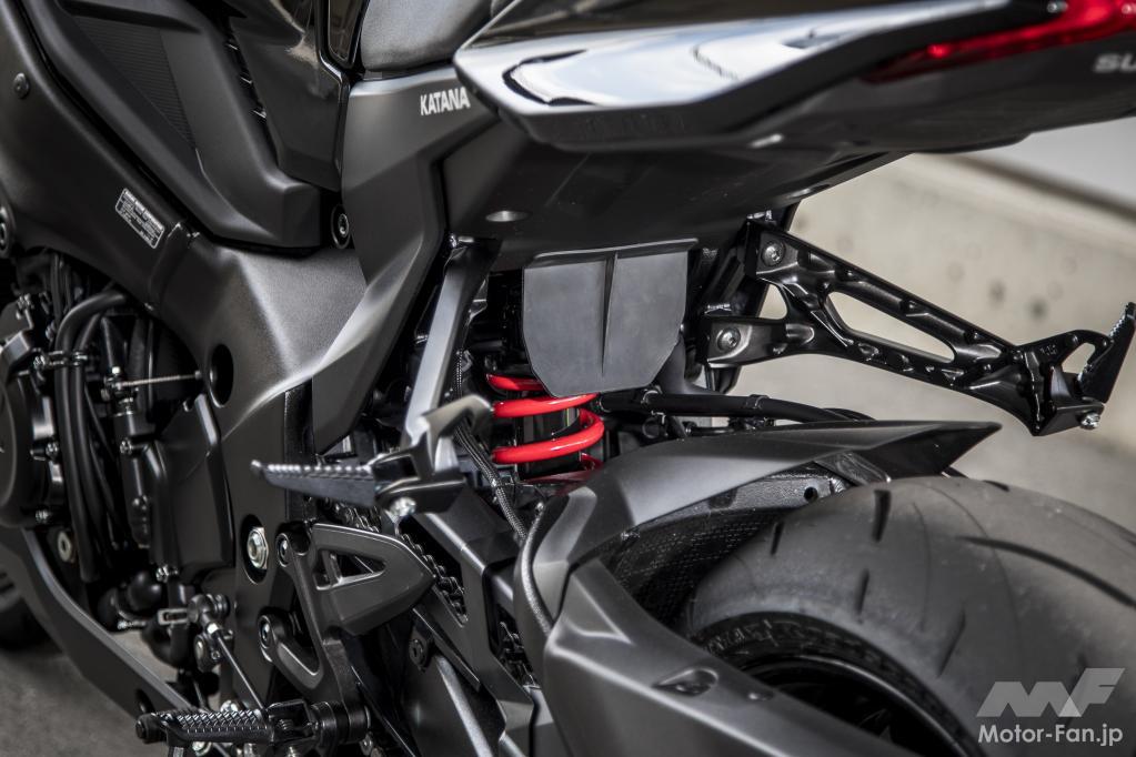 現代に蘇った新型KATANAは、まさにそんな初代のスタイリングをモチーフに開発されている。日本刀の鋭い切れ味をイメージしたラインで構成された「KANANA」の復活。初代よりもエッジのきいた、メリハリのあるデザインが印象深いが、どこから見ても初代KATANAのそれを彷彿とさせる。