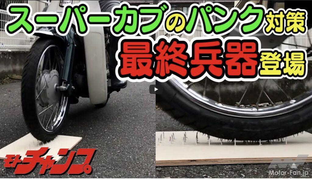 パンクしない(しづらい)タイヤを開発・発売したのはカフェカブパーティの主催者にしてCub工房代表である中島さん。これまでも数多くのカブ用パーツを開発してきた中島さんだからこそ、多くのカブヌシと接してパンクの悩みが多いことにも気づいていた。パンクしないタイヤがあれば理想的だと考えて開発を始めたそうだ。注目のアイテムを紹介するのは、もうすっかりお馴染みのモトチャンプTV。ユーチューブで無料配信されているプログラムの中でもカブの動画は毎回人気で、チャンネル内にはカブコーナーまで存在している。カブヌシなら一度は見てみるべき内容がテンコ盛りなのだ。今回はその中から「スーパーカブのパンク対策、最終兵器登場!」を見てみよう。