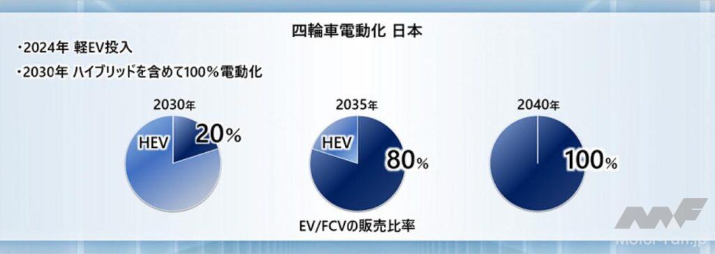これらの開発により、ホンダは、2050年のカーボンニュートラルに向けて、2030年には電気自動車と燃料電池車の販売台数を40%、2035年には80%、2040年には100%にする計画だ。