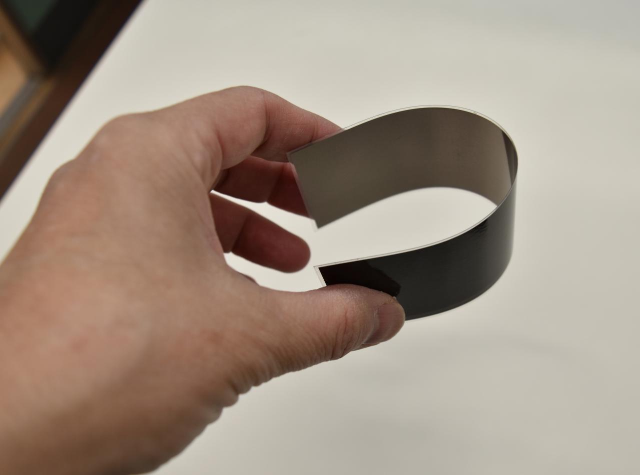 PXPの技術は軽くて曲がる、割れない太陽電池で、金属箔を基盤に使用し、シリコン製太陽電池のデメリットである曲がりにくさと割れやすさを克服している。