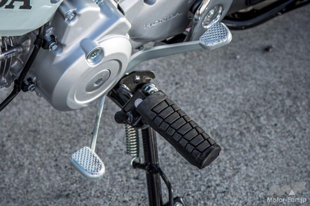 クロスカブ110は可倒式ステップを採用。ラバーのデザインも異なっている。