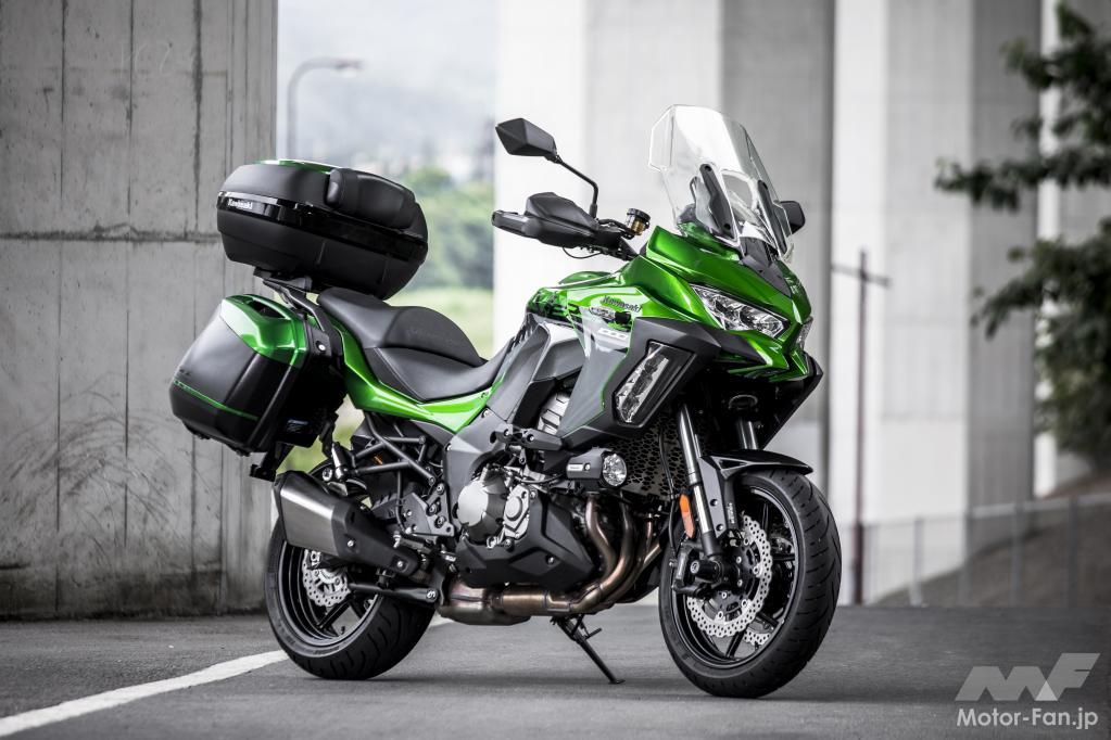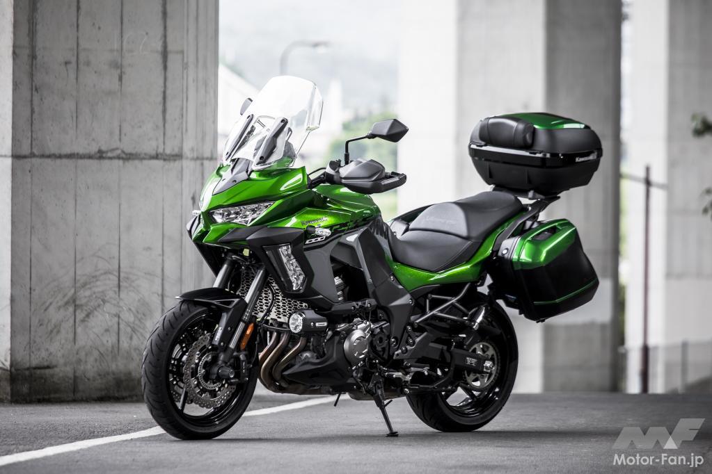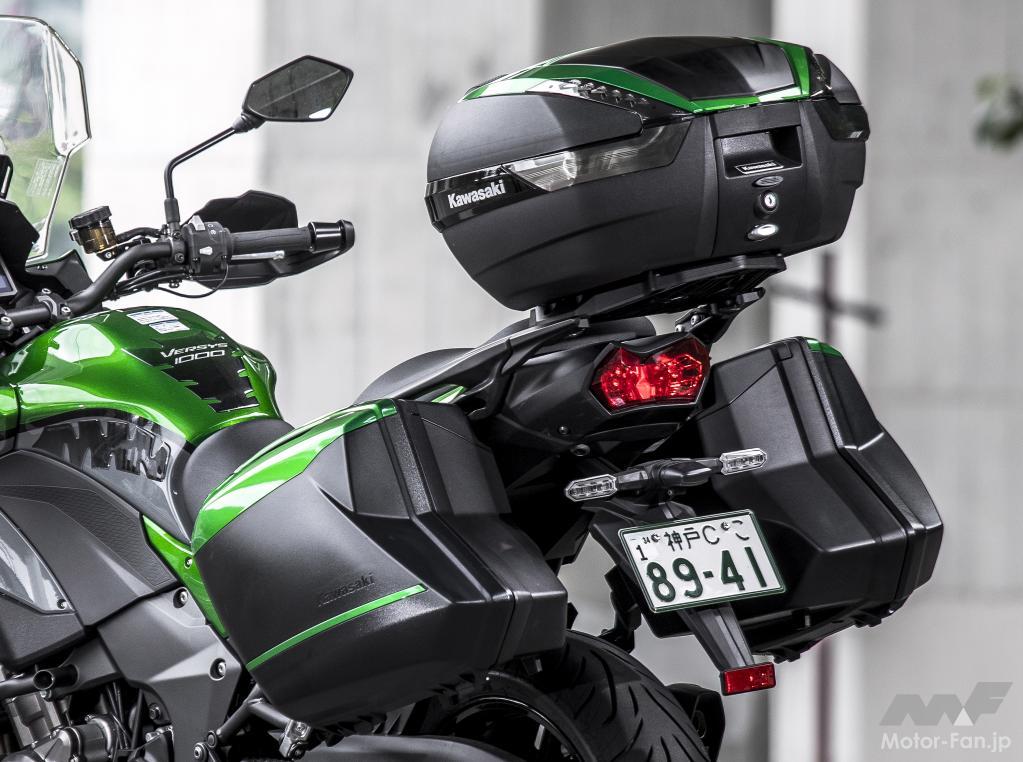 パワーユニットやフレーム等の基本部分はZ1000やNinja1000と共通する。ツアラーとしての仕上がりは一級のレベルにある。ちなみに既報のNinja1000もパニアケース等、純正アクセサリーが豊富にオプション設定されているが、パニアケースとトップケースとの併用はできない。しかしヴェルシス1000SEでは同時装着が可能。つまり左右パニアケースとトップケースのトータルで103Lもの積載スペースを誇る。