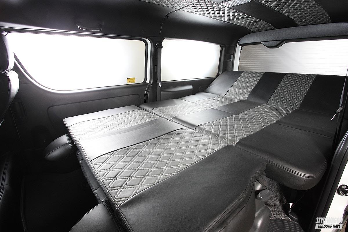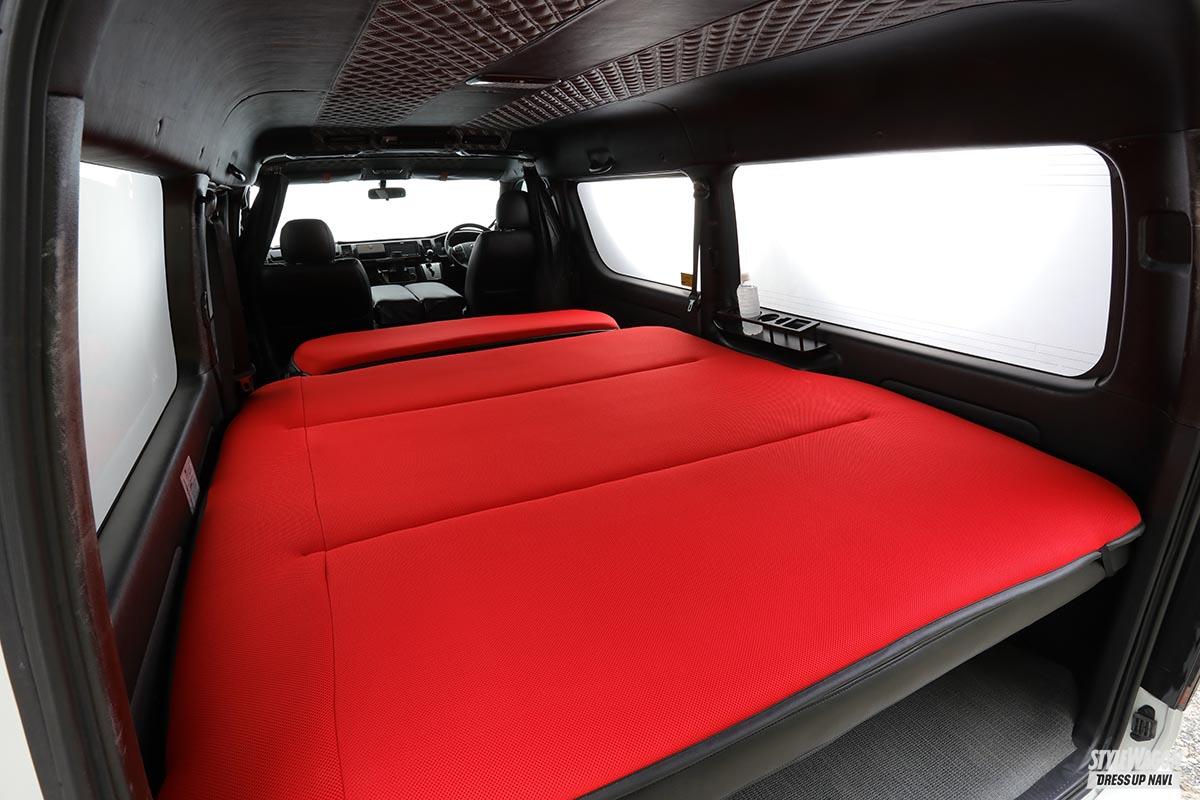目的地に着いたらテントなどを設営することもなく、そのままクルマの中で就寝できる車中泊仕様はアウトドア人気の今、もっとも注目されているハイエースのカスタム。そんなハイエース用のベッドキットを早くから手掛けているのがシンケだ。シンケのフリーダム・ダブルリクライニングベッドキットは、前後のマットが無段階でリクライニングできる便利なベッドキット。
