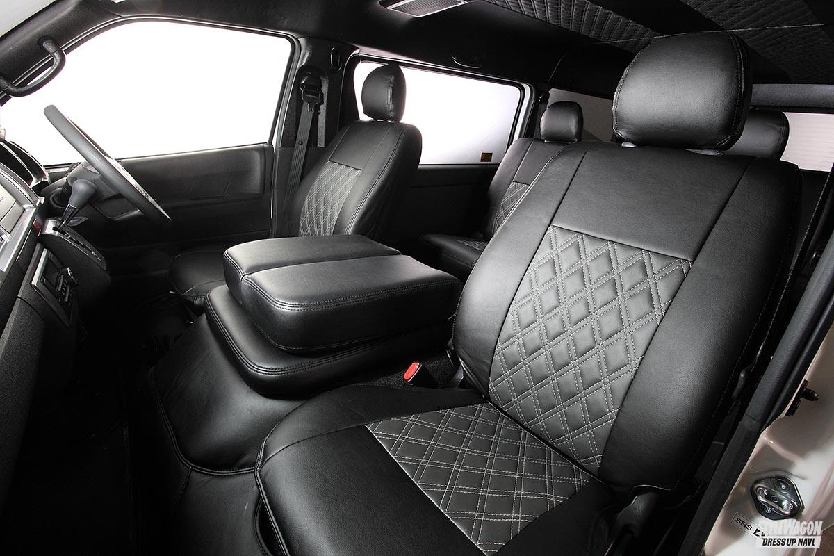 長距離移動時の疲れを軽減するフラットアームレストや、ワンタッチでスライドドアの開閉が可能になるクイックタッチ。アウトドアでの汚れを気にせず使えるフロアマットや、車内の傷付きを防止するタイヤハウスカバーなど、ハイエースの快適性や機能性をアップさせるアイテムが目白押しだ。