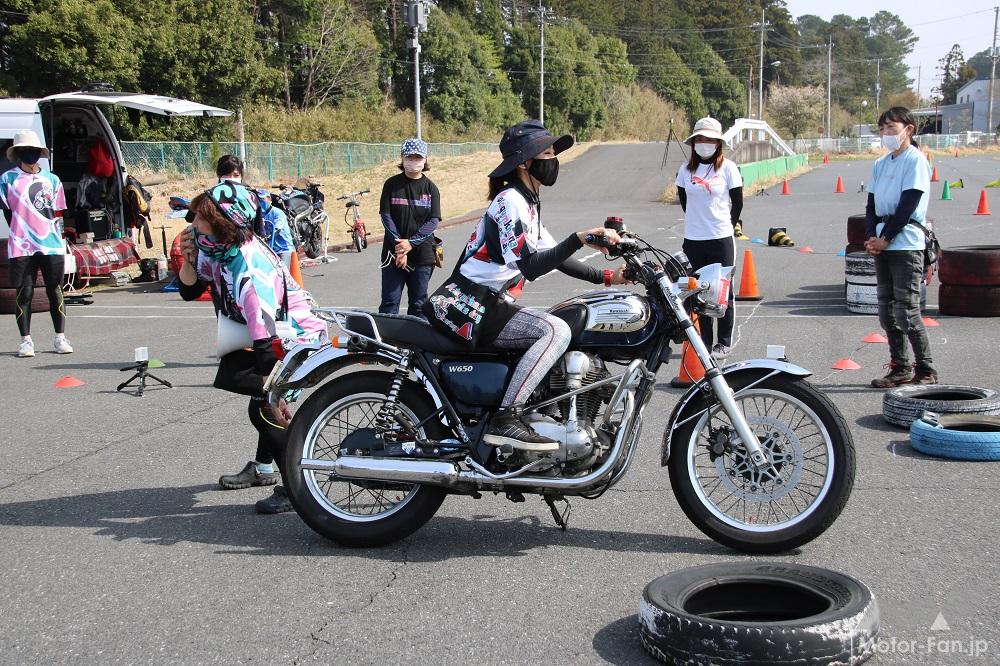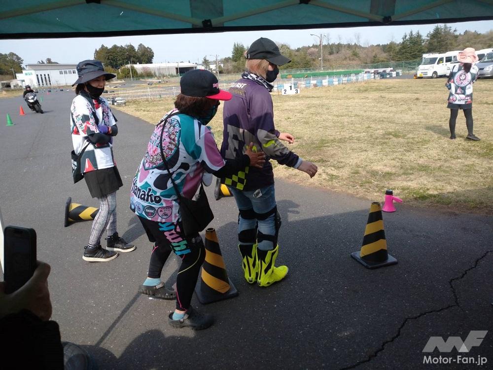 あと安全にできるのがいい。バイクをコカさないとうまくならないっていう人もいるけれど、できればコケたくないじゃないですか。修理にお金かかるし、何しろケガをしたくないですし。選手としてタイムを突き詰めていけばそういったことも出てくるかもしれないけれど、それでもこのレディースディならばバイクも体も無事でできるのがいい。素晴らしいです。