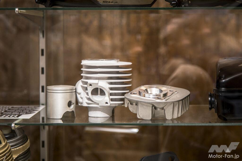 ボアアップキット、エアクリーナーボックス、純正タイプマフラー、駆動系キット、ドライブフェイス、トルクカム、強化センタースプリング、クラッチアッセンブリー、ウエイトローラー、強化リヤショック、ブレーキシューまでエンジンパーツ、からセッティングパーツ、補修パーツまで多岐にわたり、そのラインナップの充実ぶりが伺えます。